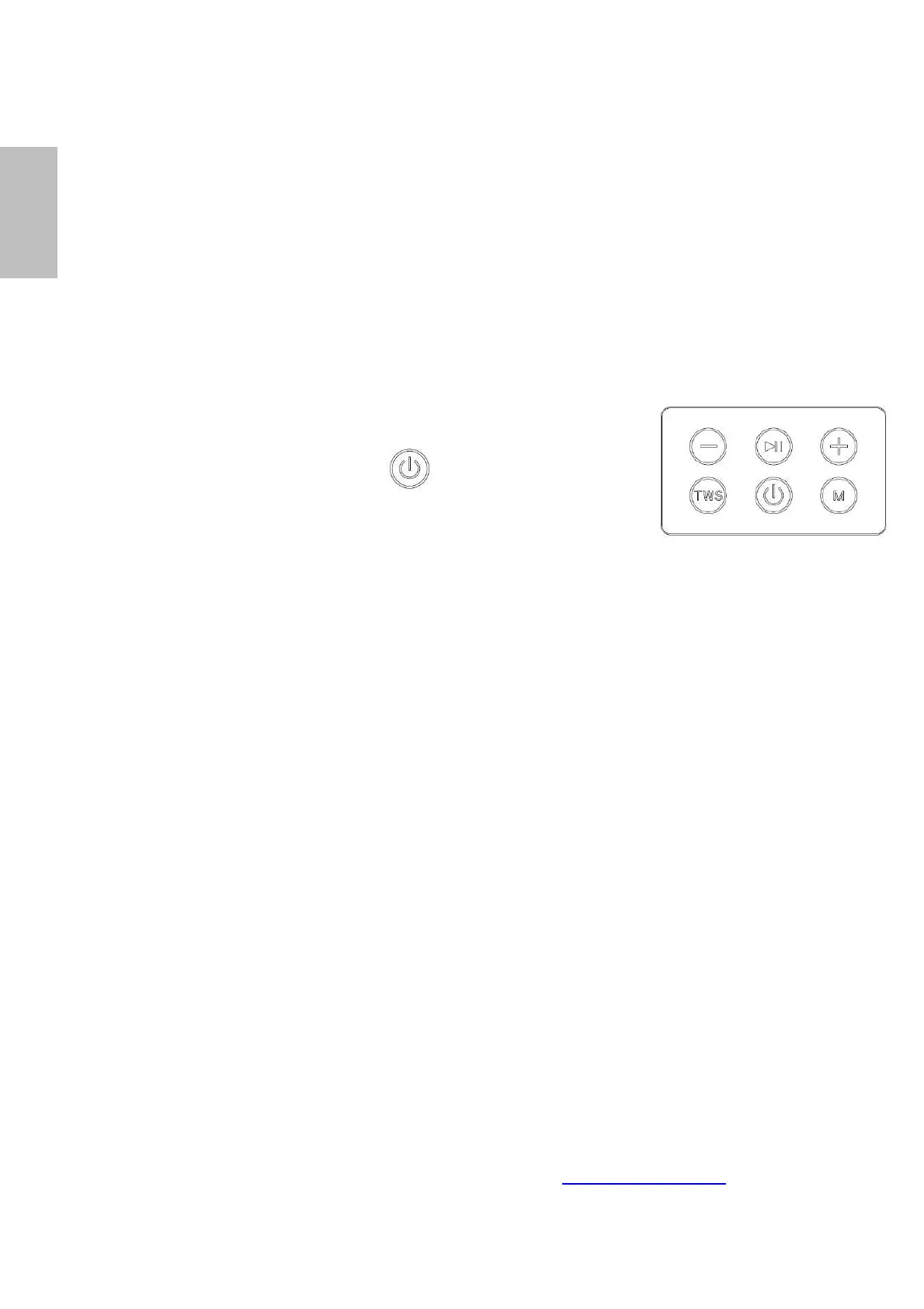2. Press the “TWS” button on Speaker 1 (Left speaker) to initiate the automatic pairing mode between the