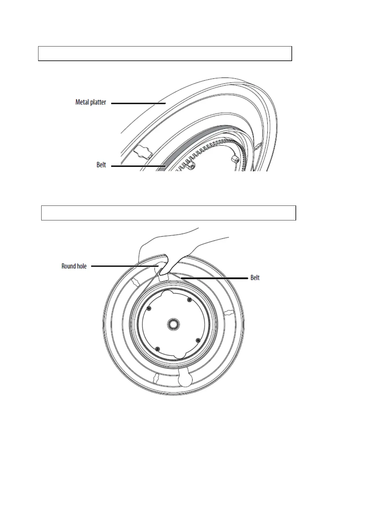 Note: The belt is preinstalled on the bottom of the metal platter.