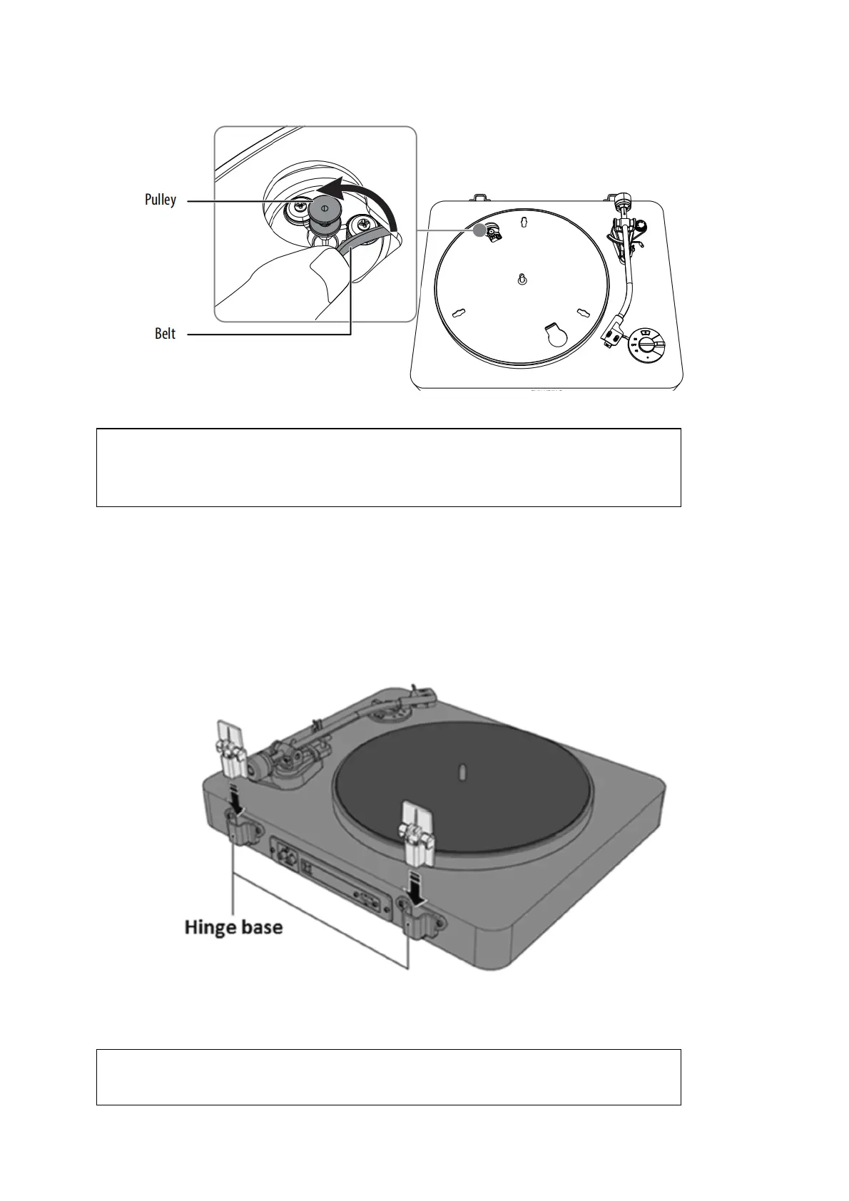 1. Insert the dust cover hinges into the hinge bases on the back panel of the unit.