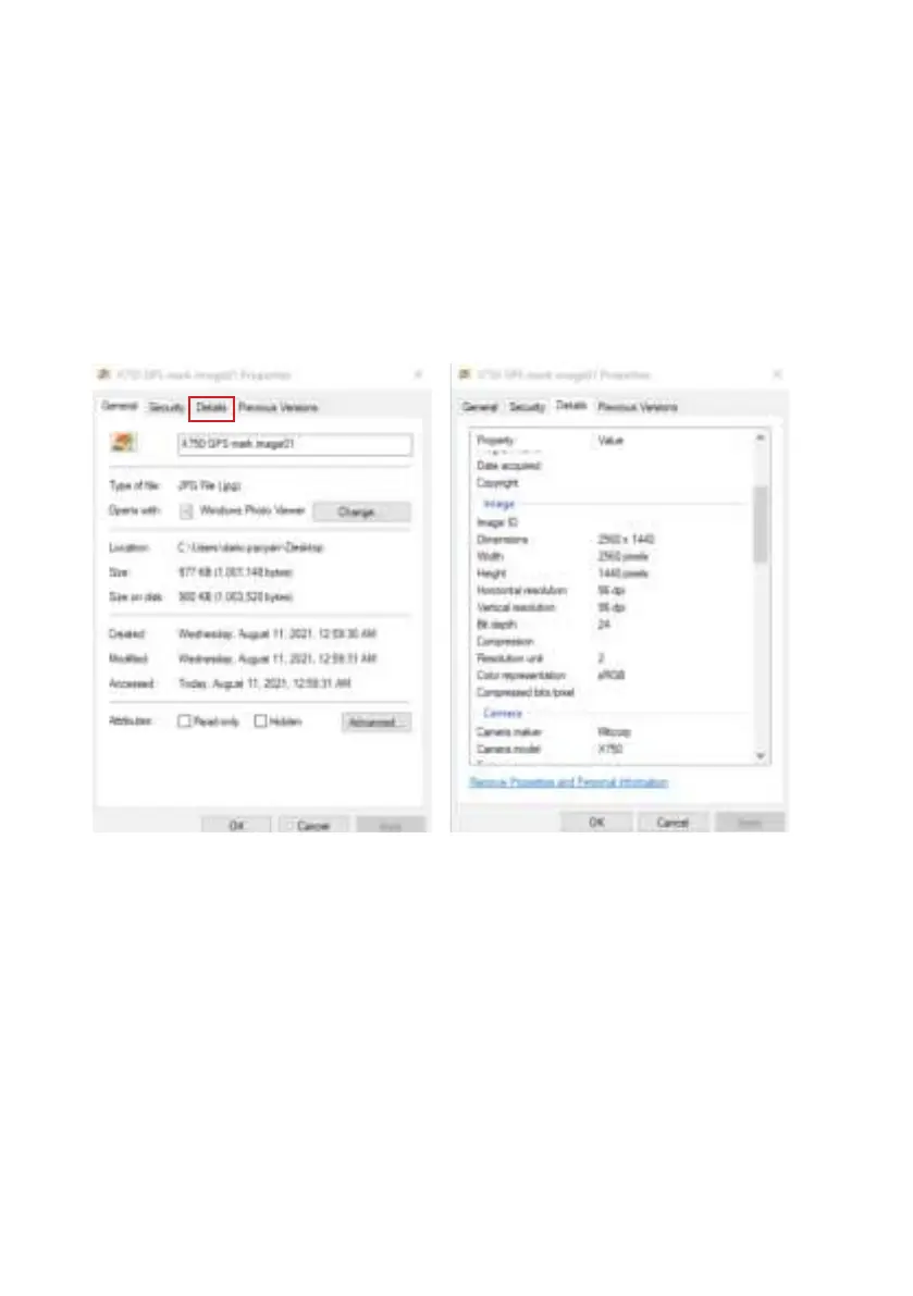 1. Right click X750’s image file and get to the “file detail” tag sheet.