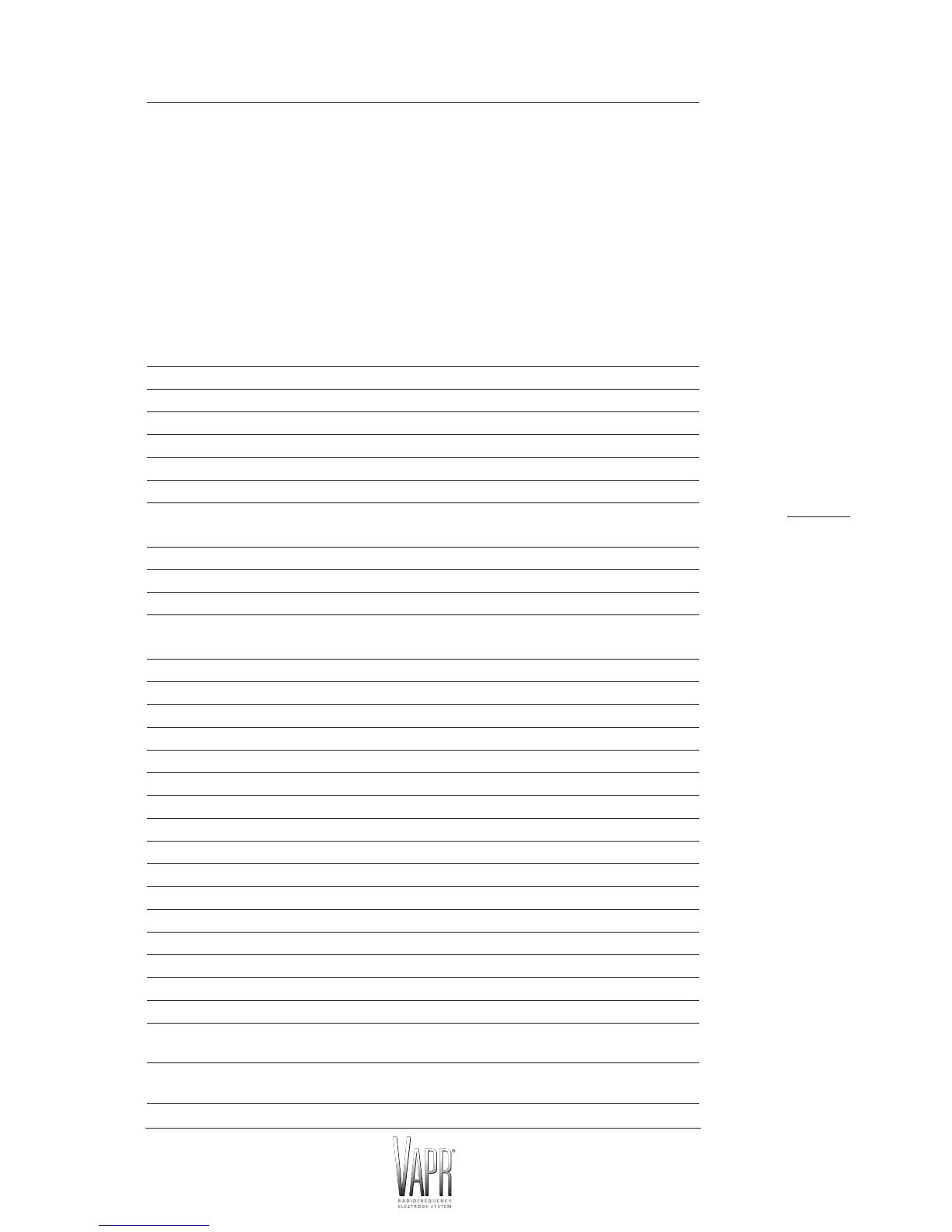 VAPR ELECTRODE SPECIFICATIONS