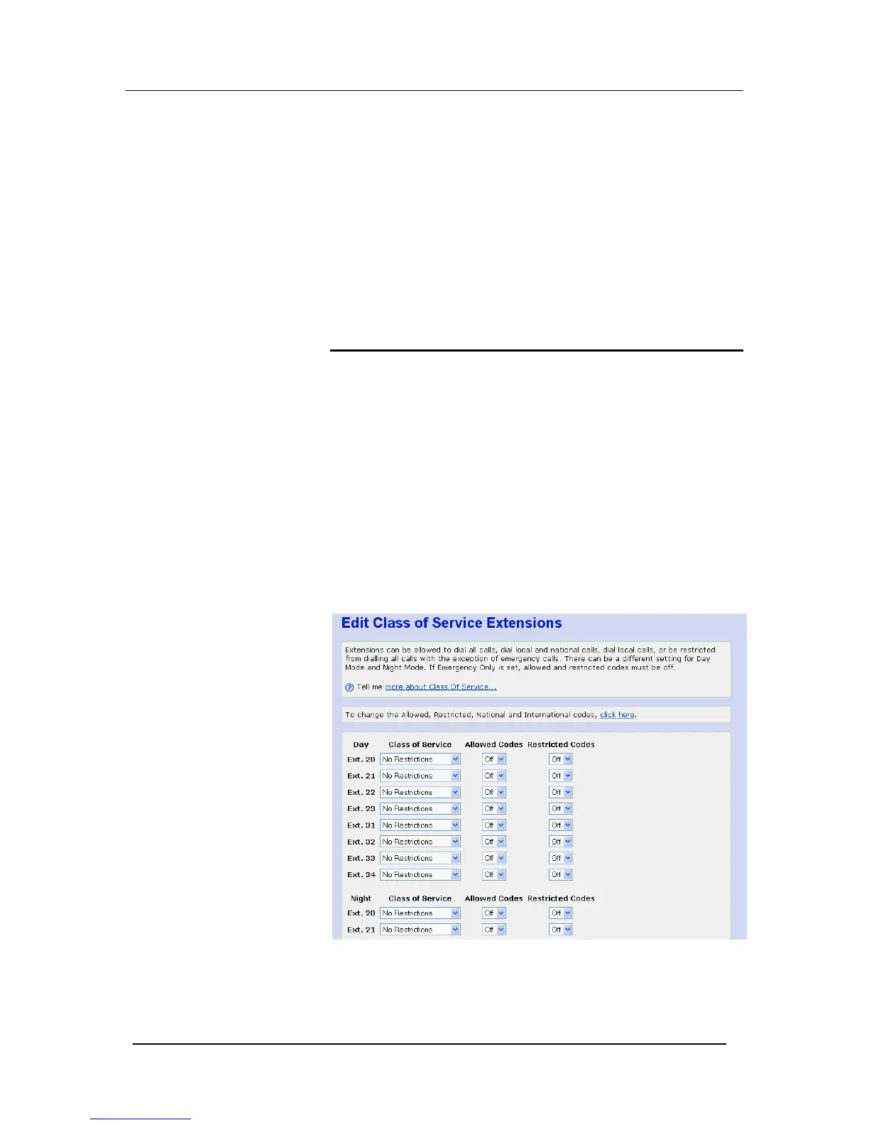 The Class of Service feature allows the user to define restriction