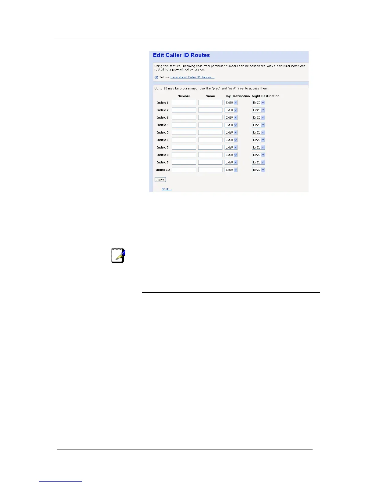 Up to 30 individual entries can be made, referred to as Index 1- 30.