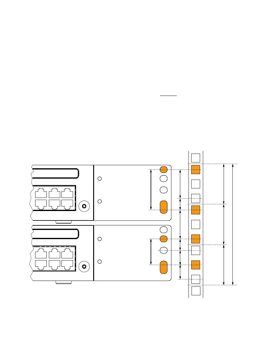 • The holes in the mounting plates allow two communication servers to be placed di-