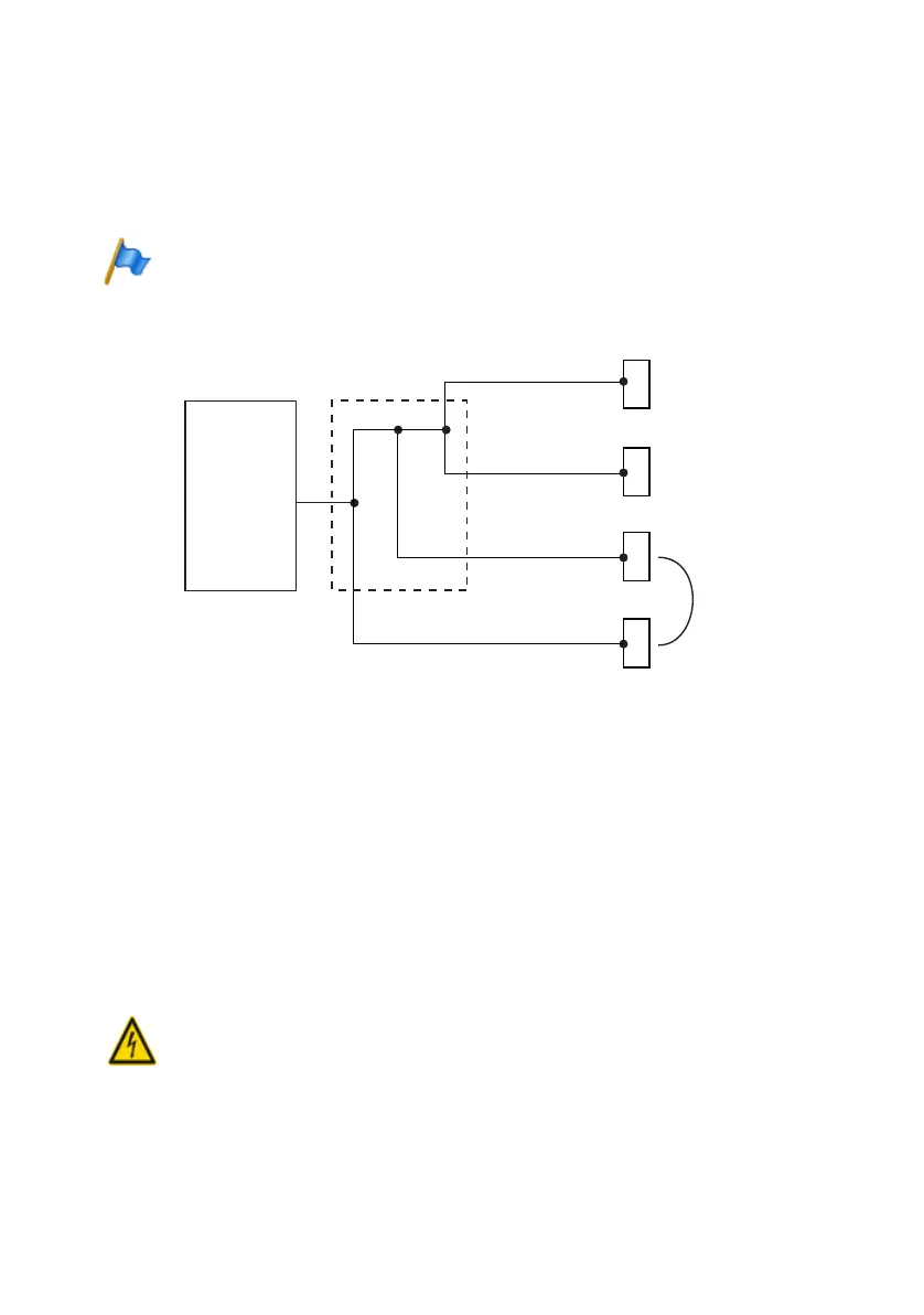 Connect the cable screens to one another at the splitting point only. Observe the tree structure