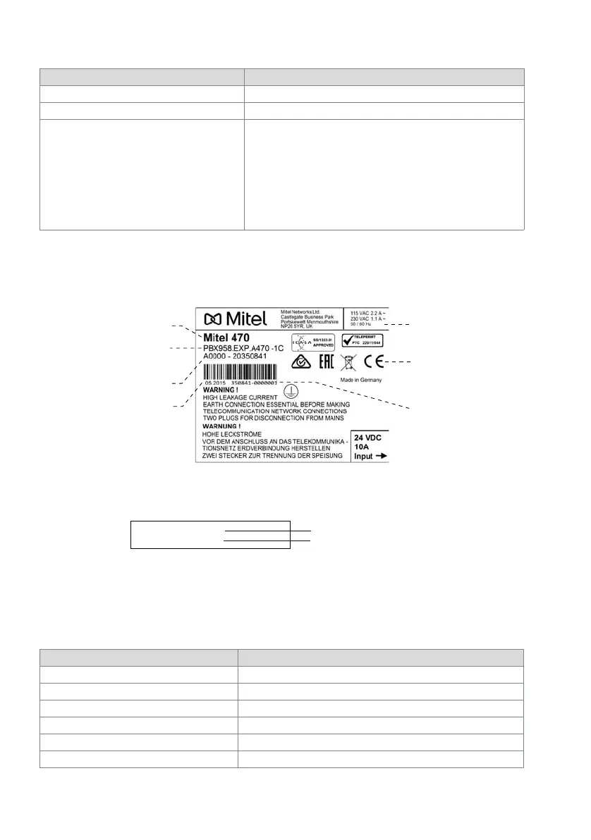 Fig. 92 Rating plate (example Mitel 470 communication server)