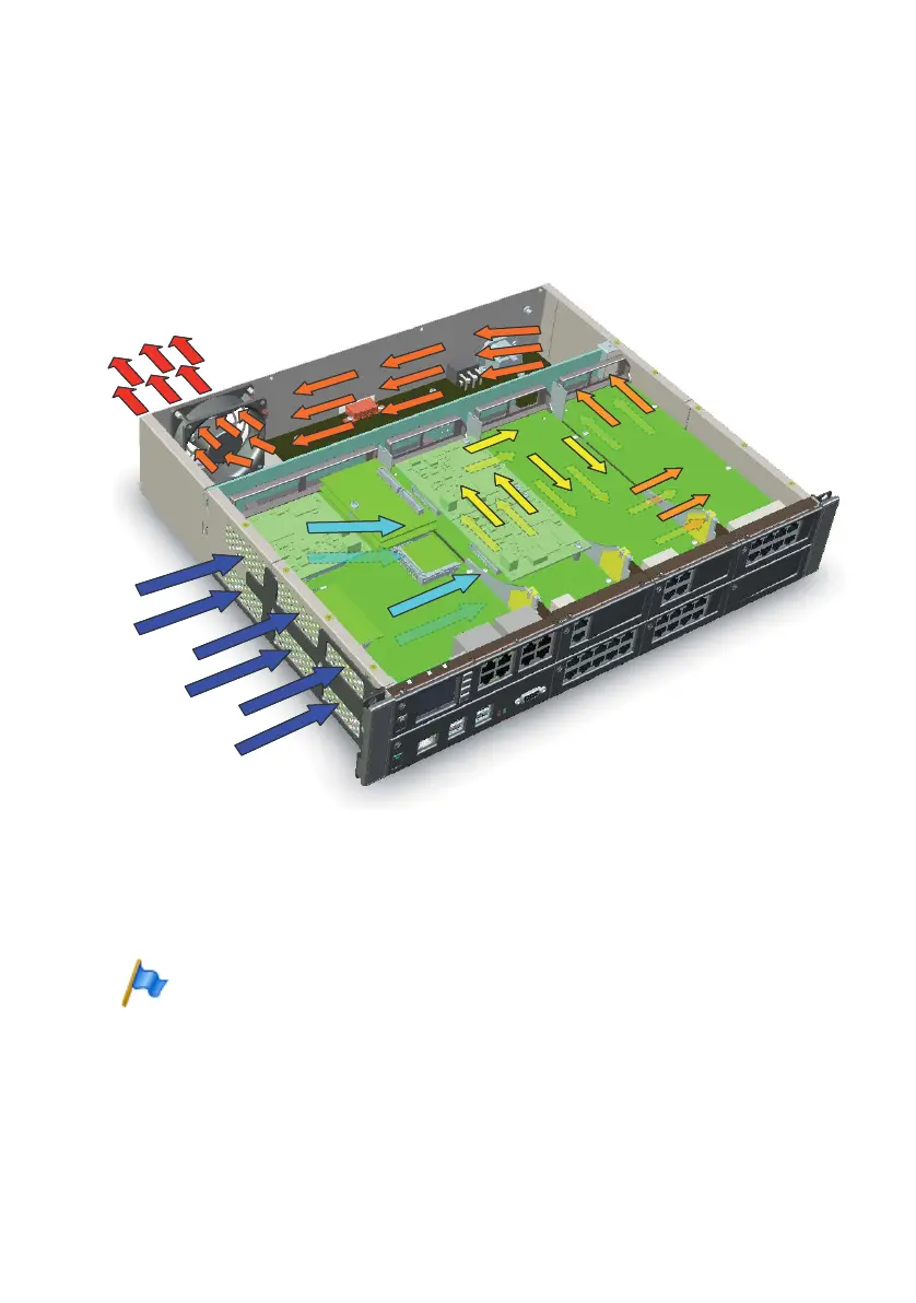 housing is designed so the air flow is first guided at two levels over the processor cards