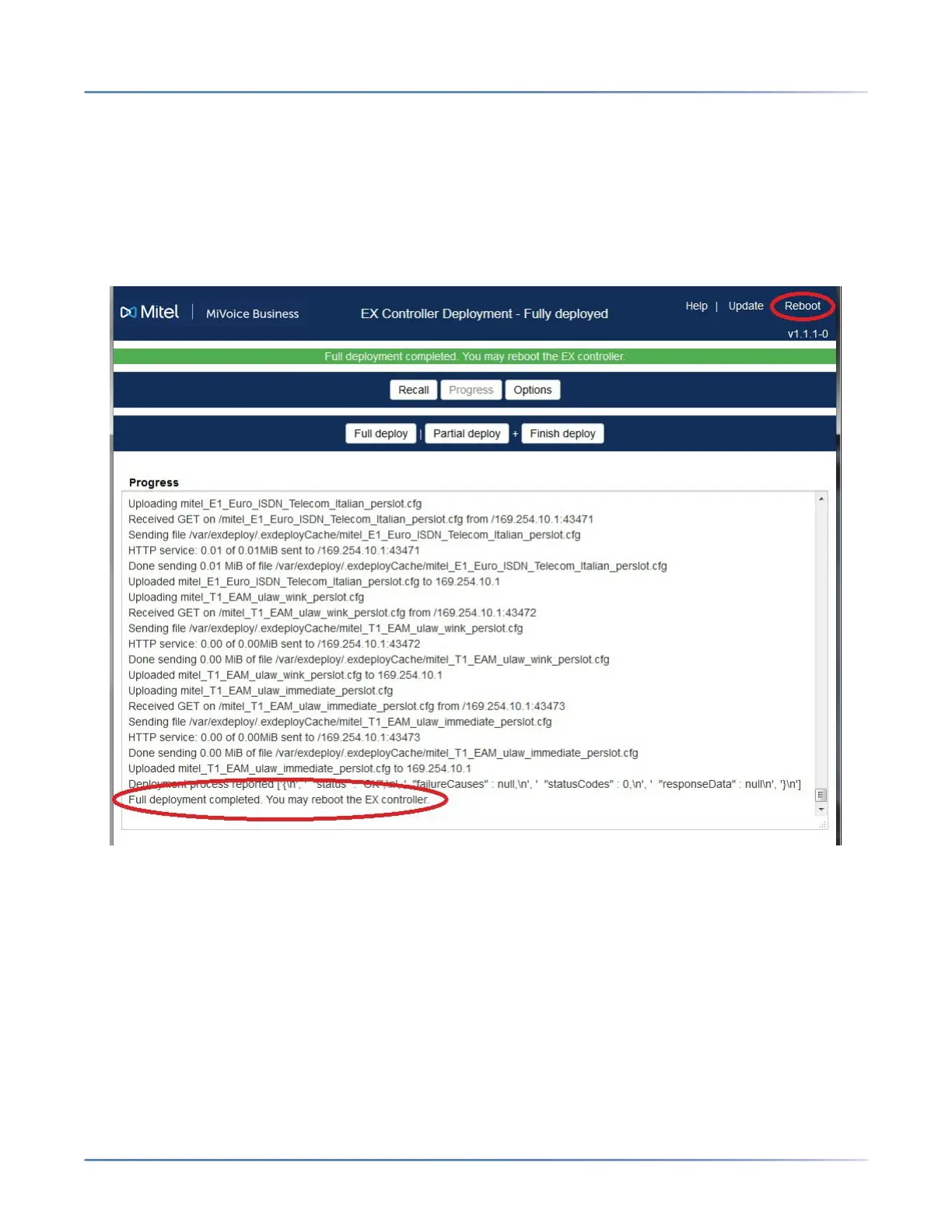 b. After the partial deployment, if required, power off the EX Controller, and finish the deployment