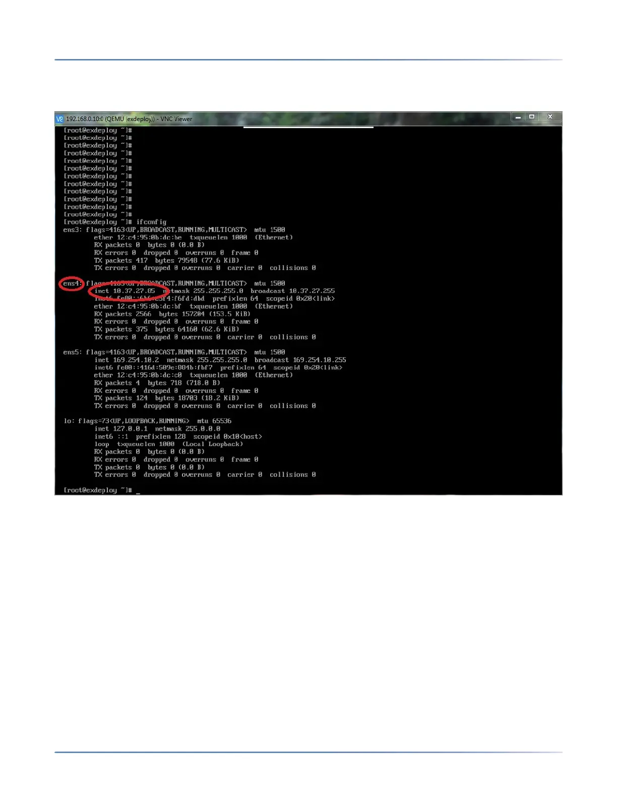 command and verify whether the correct IP is assigned to ens4.