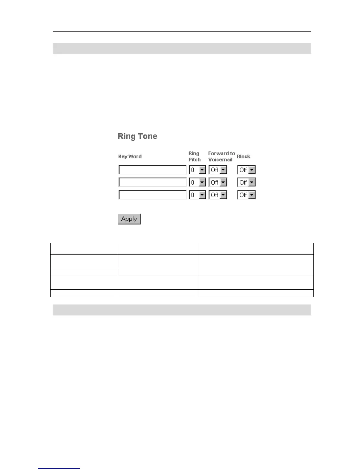 Table 10 Web Configuration Tool: Ring Tones Settings