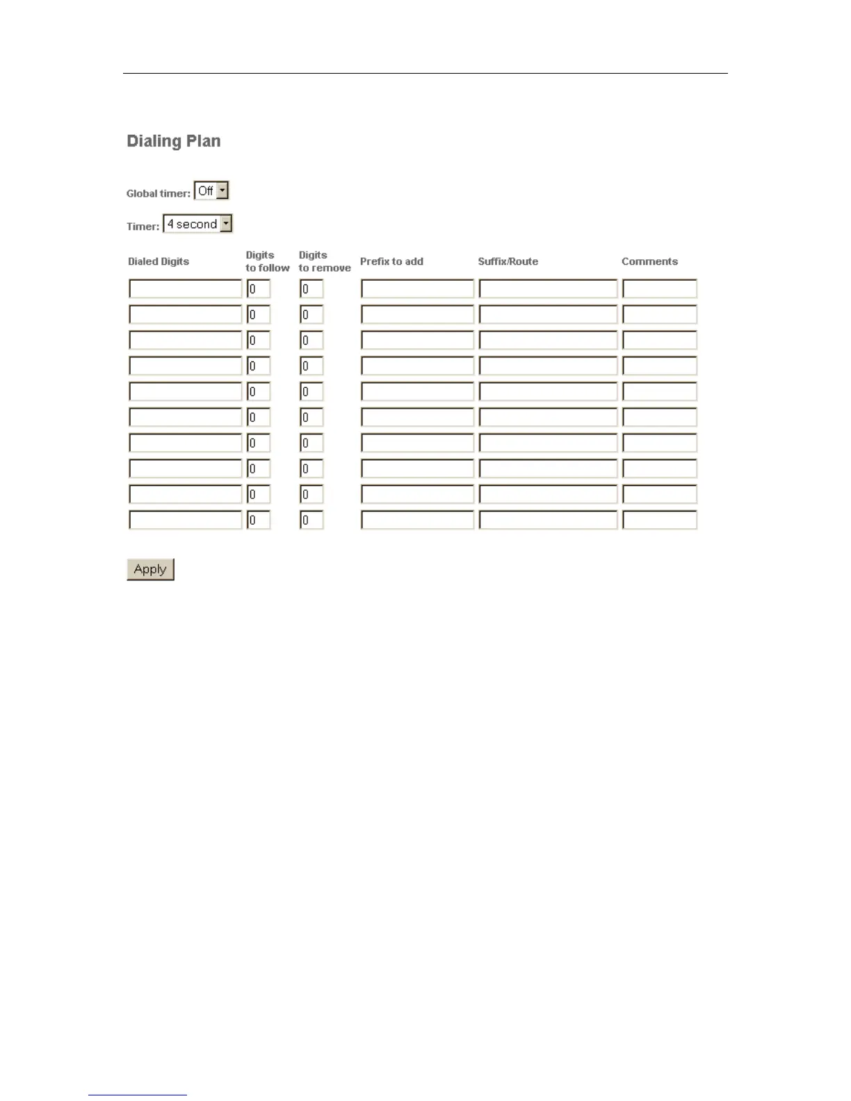 Note: Due to memory limitation in the phone, the contents of all Dialing Plan fields cannot