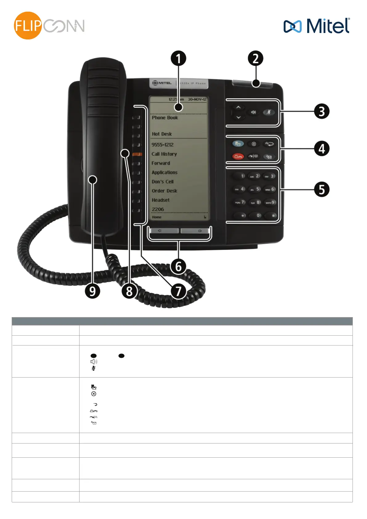 Page 2 of 4 Flip Connect Hosted VoIP – Mitel 5320(e) IP Phone Quick User Guide www.flipconnect.co.uk/support/userguides