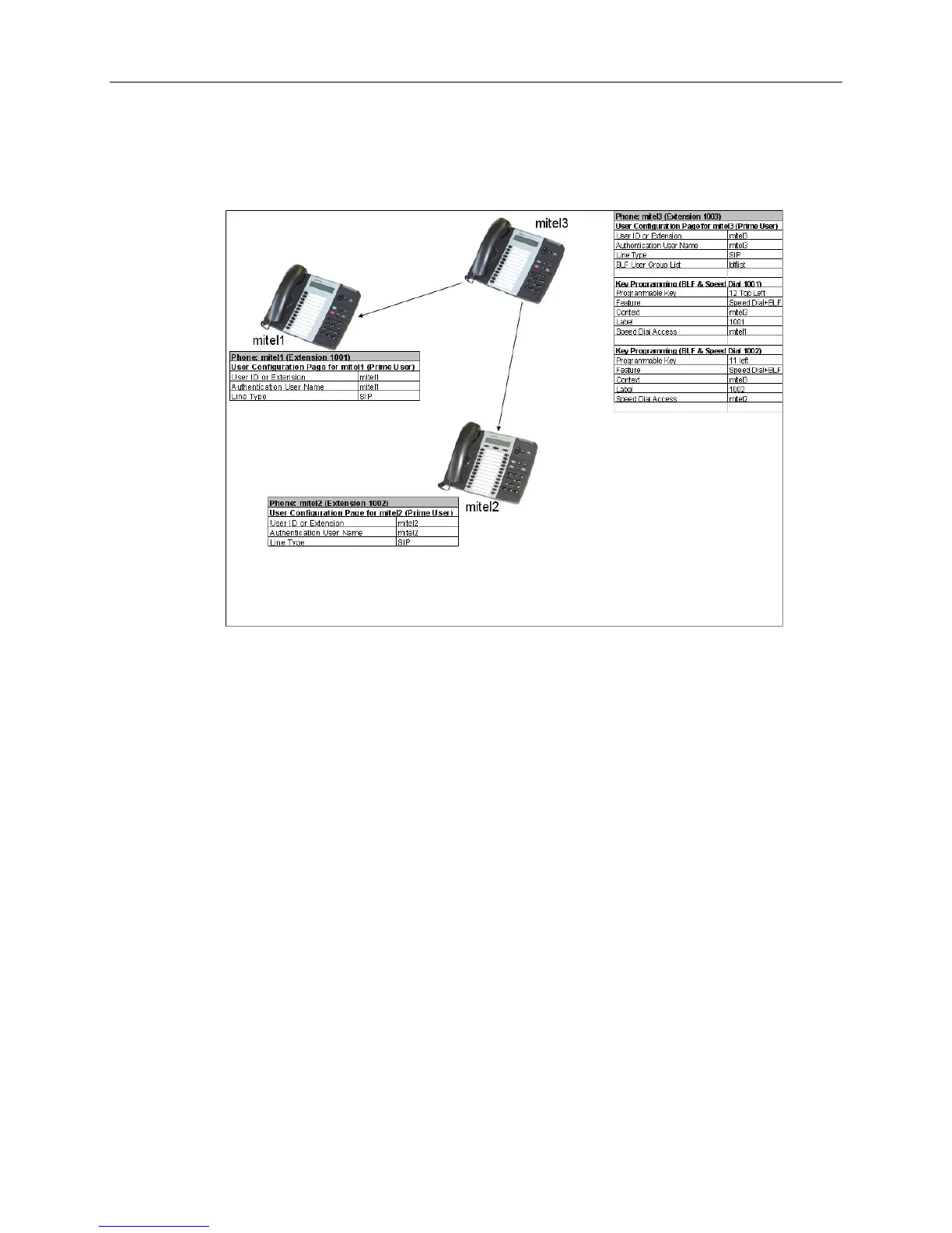 Programming pages (in the Web Configuration tool) are completed for BLF Keys, where mitel3