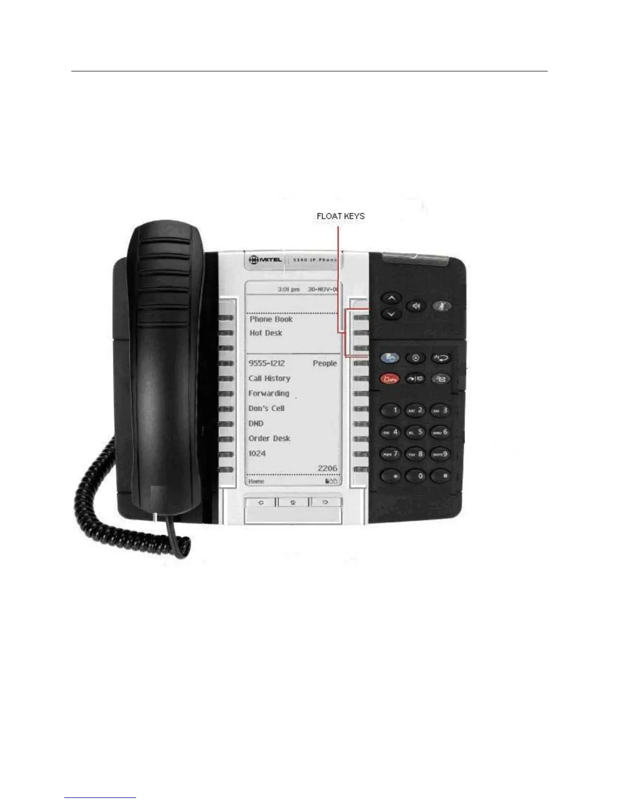 on one of the phone’s application pages. The location of the Float keys is shown in the following