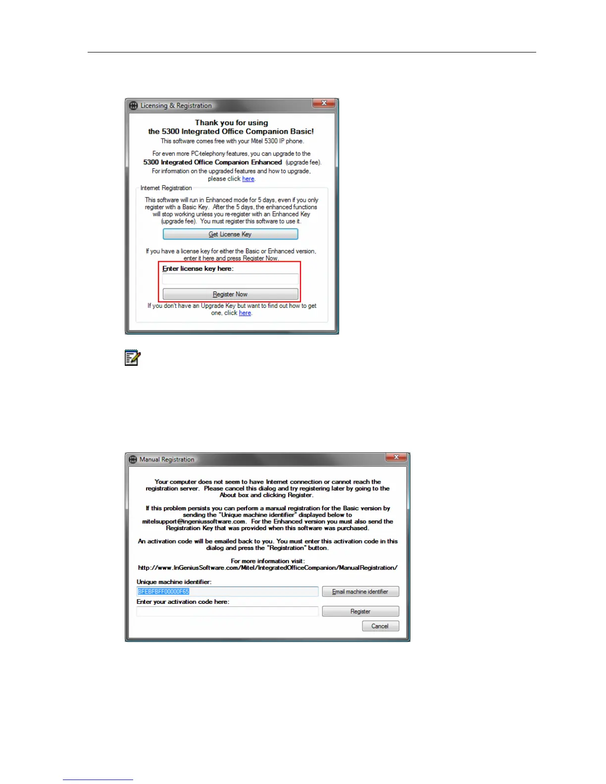 system, a Manual Registration dialog will appear instead with a Unique Machine