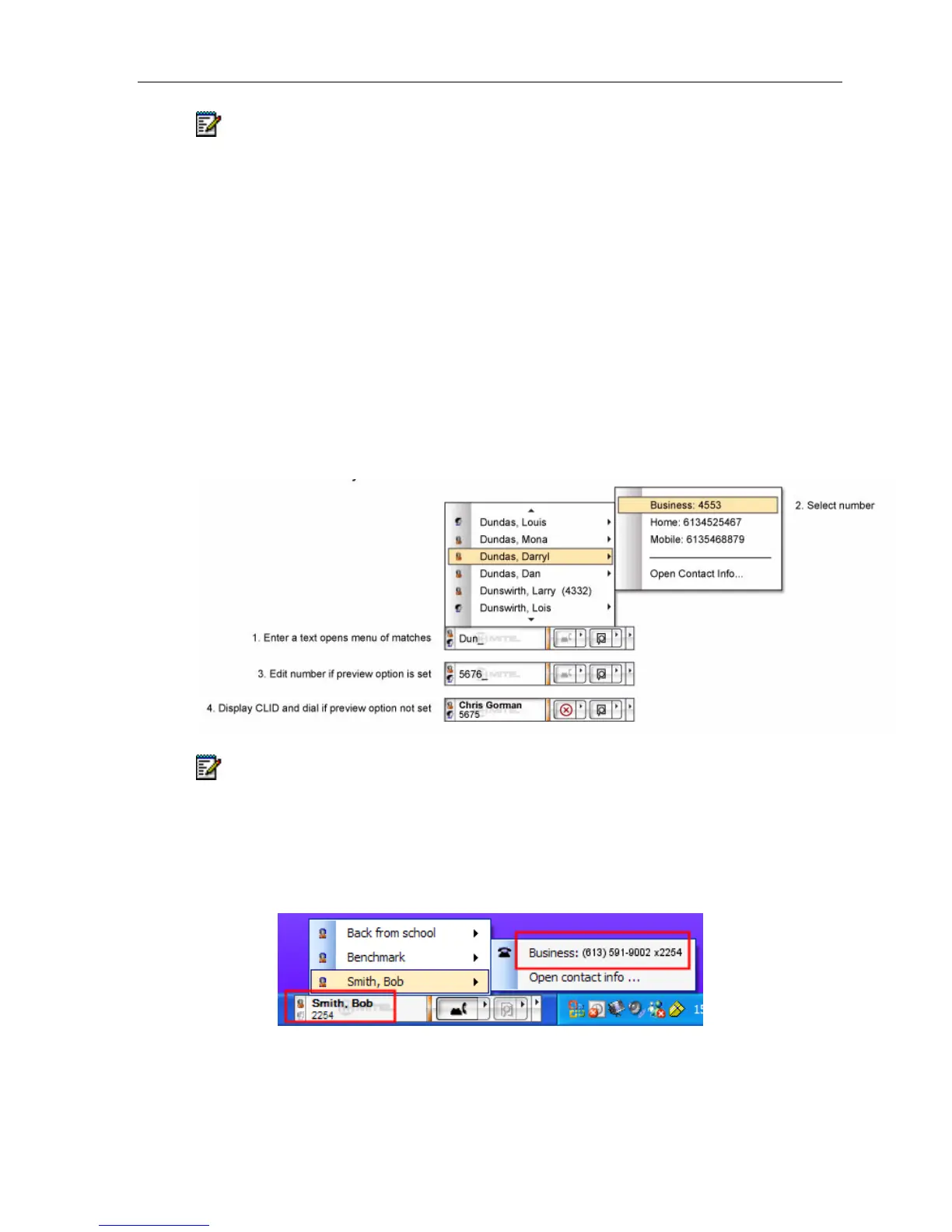 enabled) or dial the number.