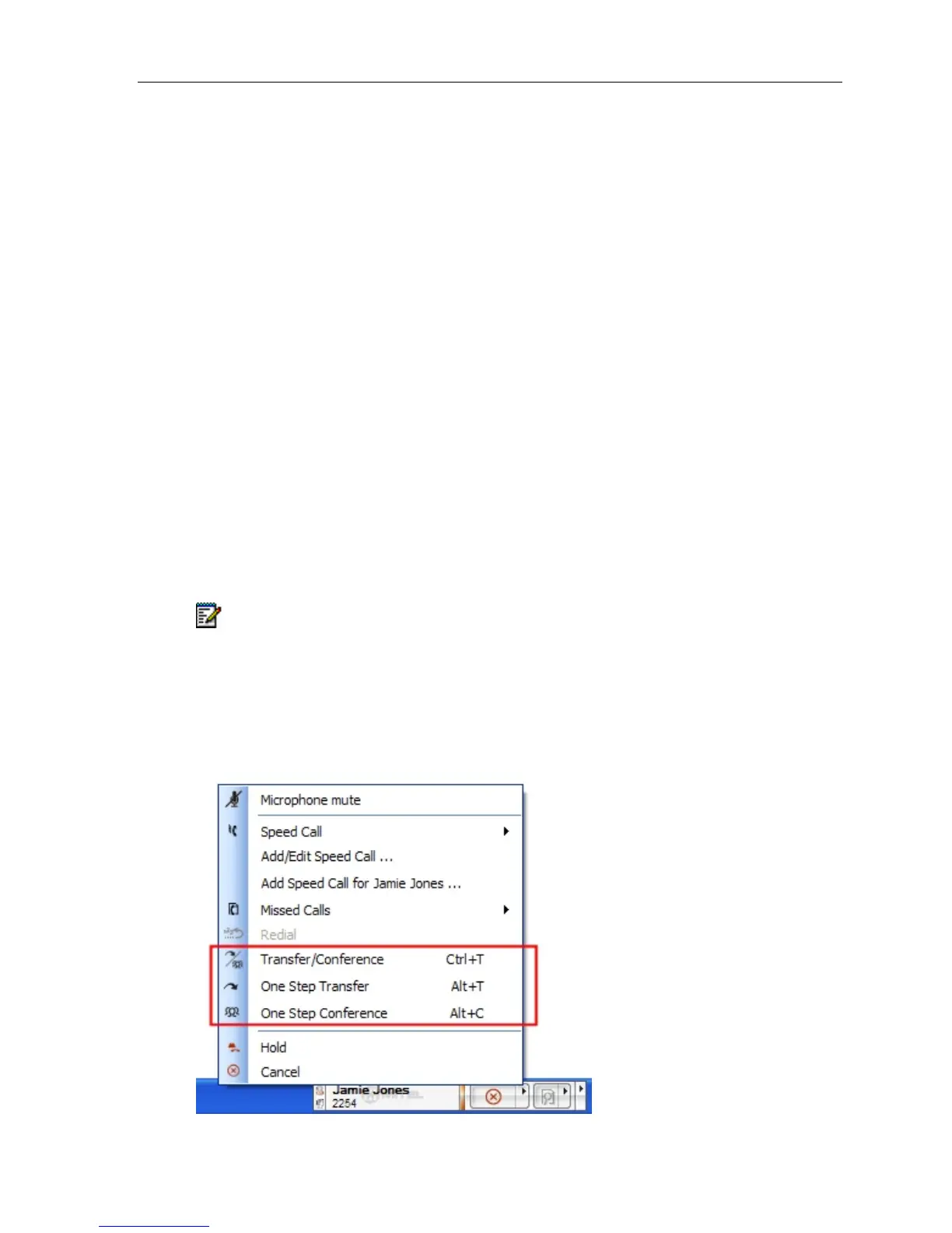 When a call is in progress up to 3 menu items are added to the Phone Menu (Right click on