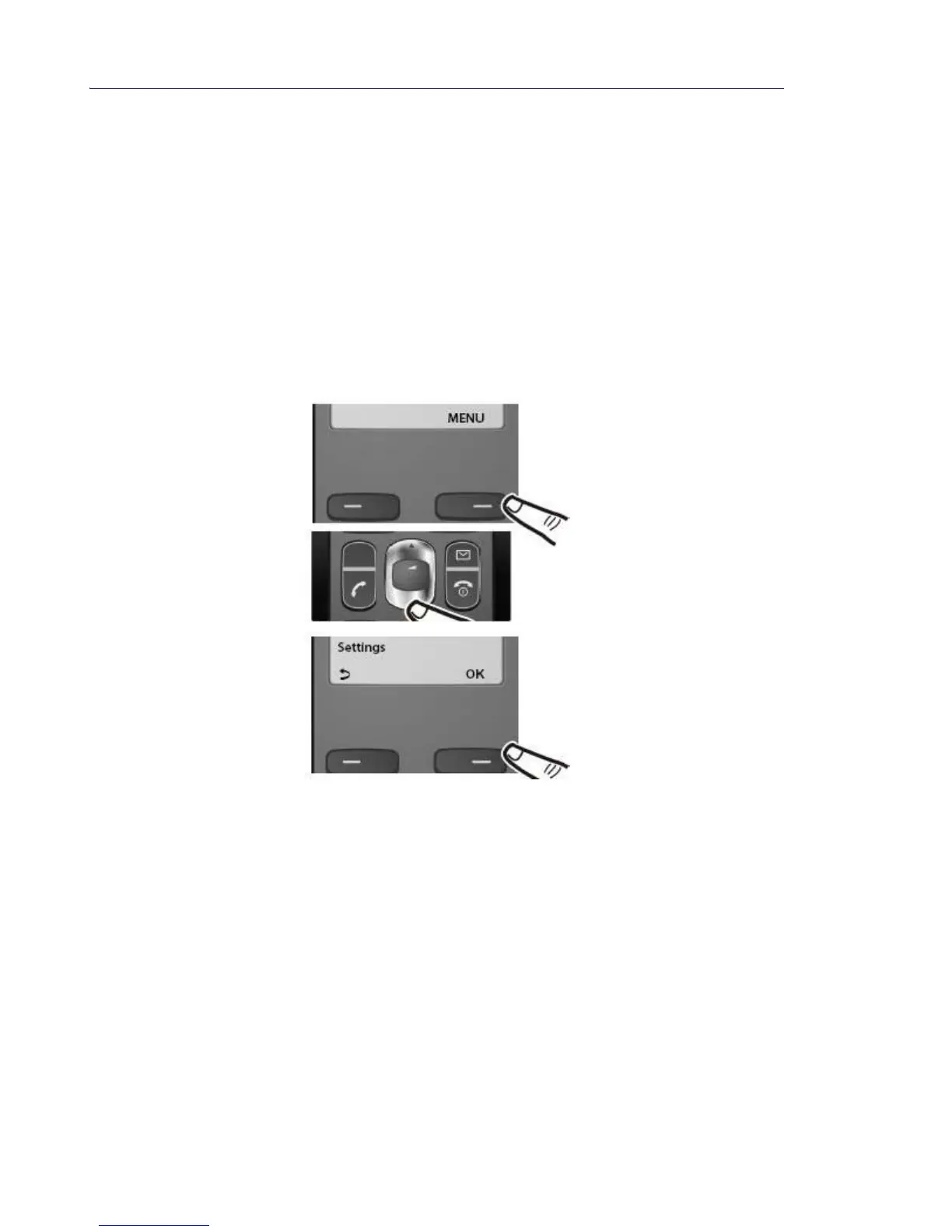 1. Press the display key below MENU on the handset to open the main menu (see the illus-