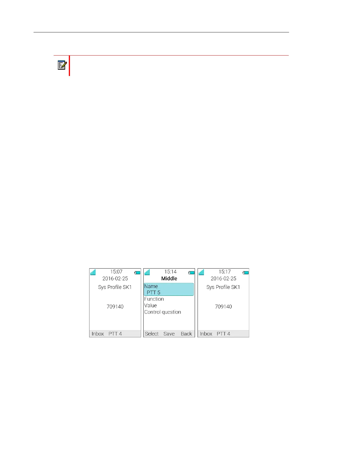 this case, the soft key "Inbox" and middle soft key "PTT 4" are determined by the system profile