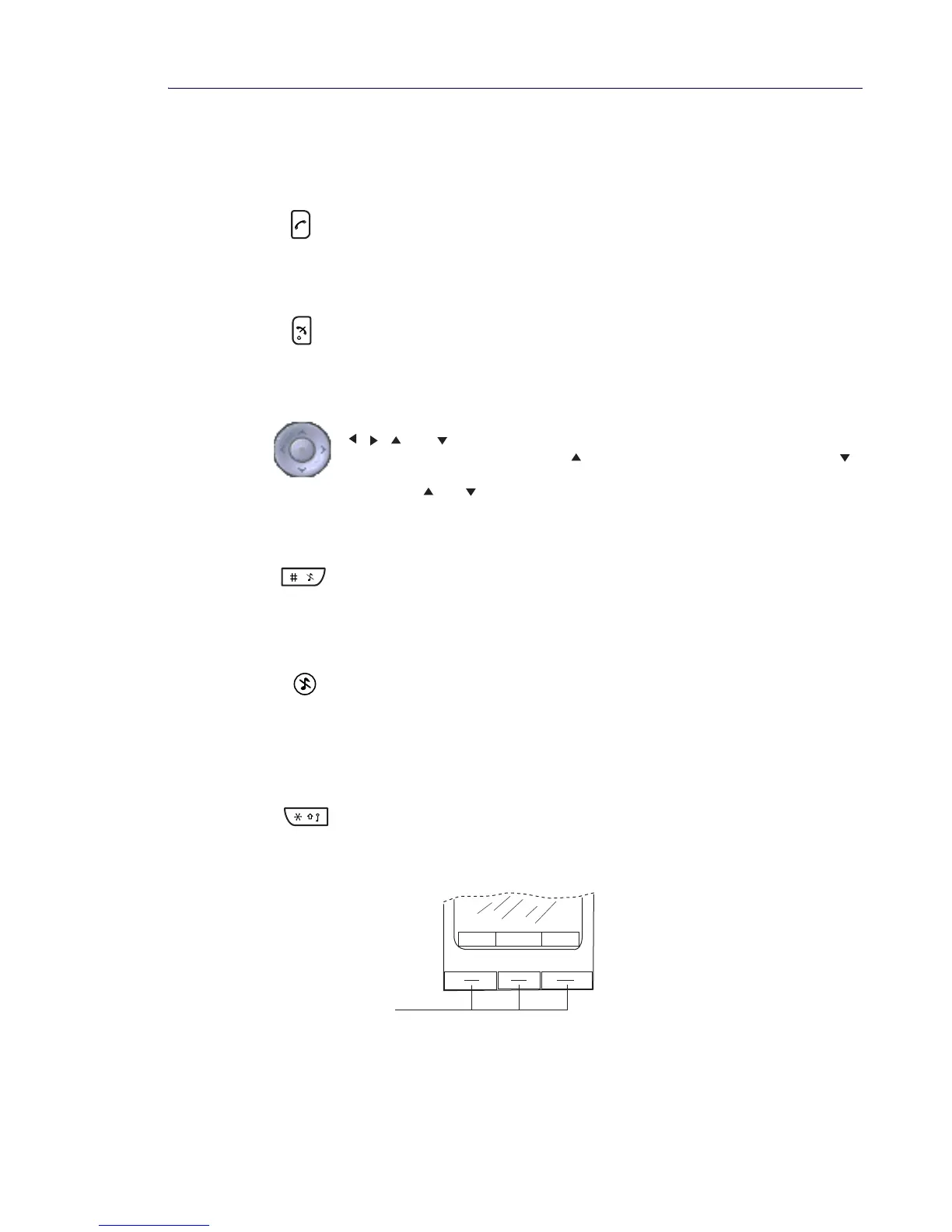 The three soft keys are located just beneath the display. The function of each soft key is indicated