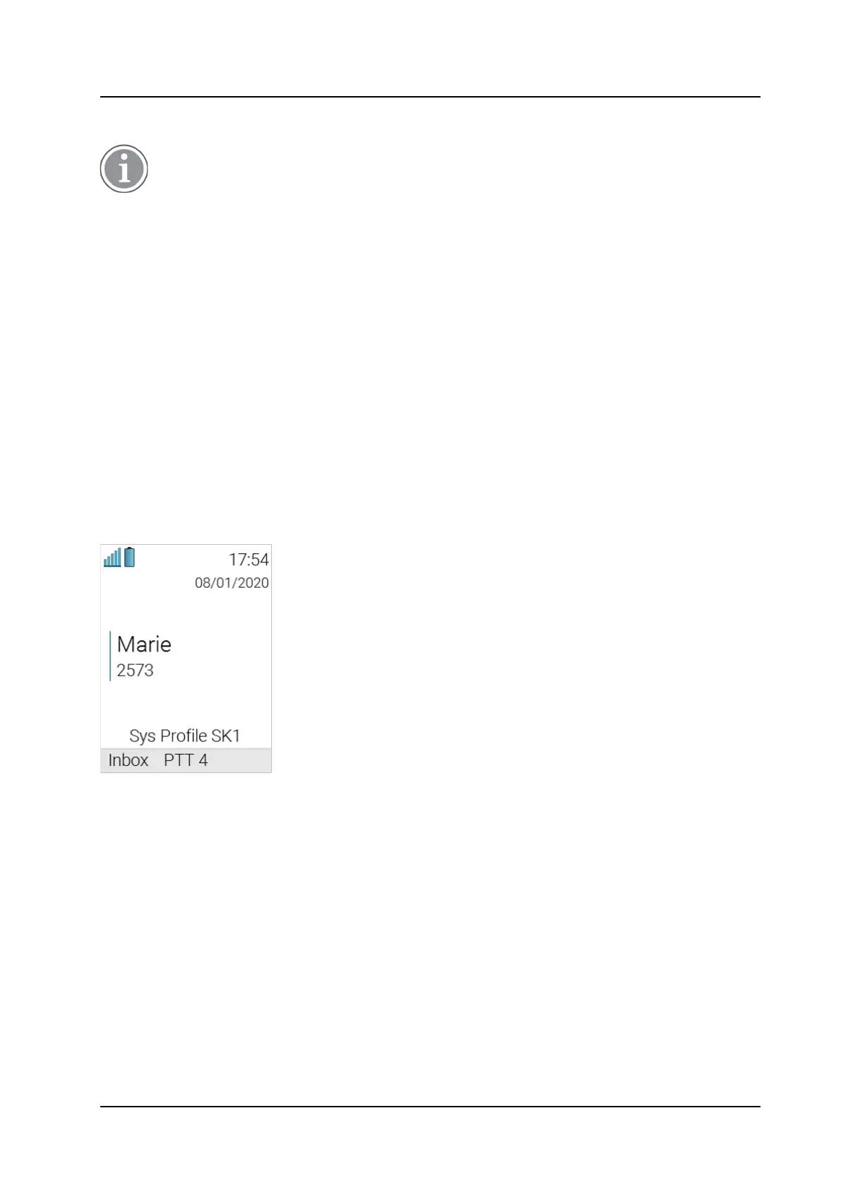 system profile has been activated under the name Sys Profile SK1. In this case, Inbox and PTT 4