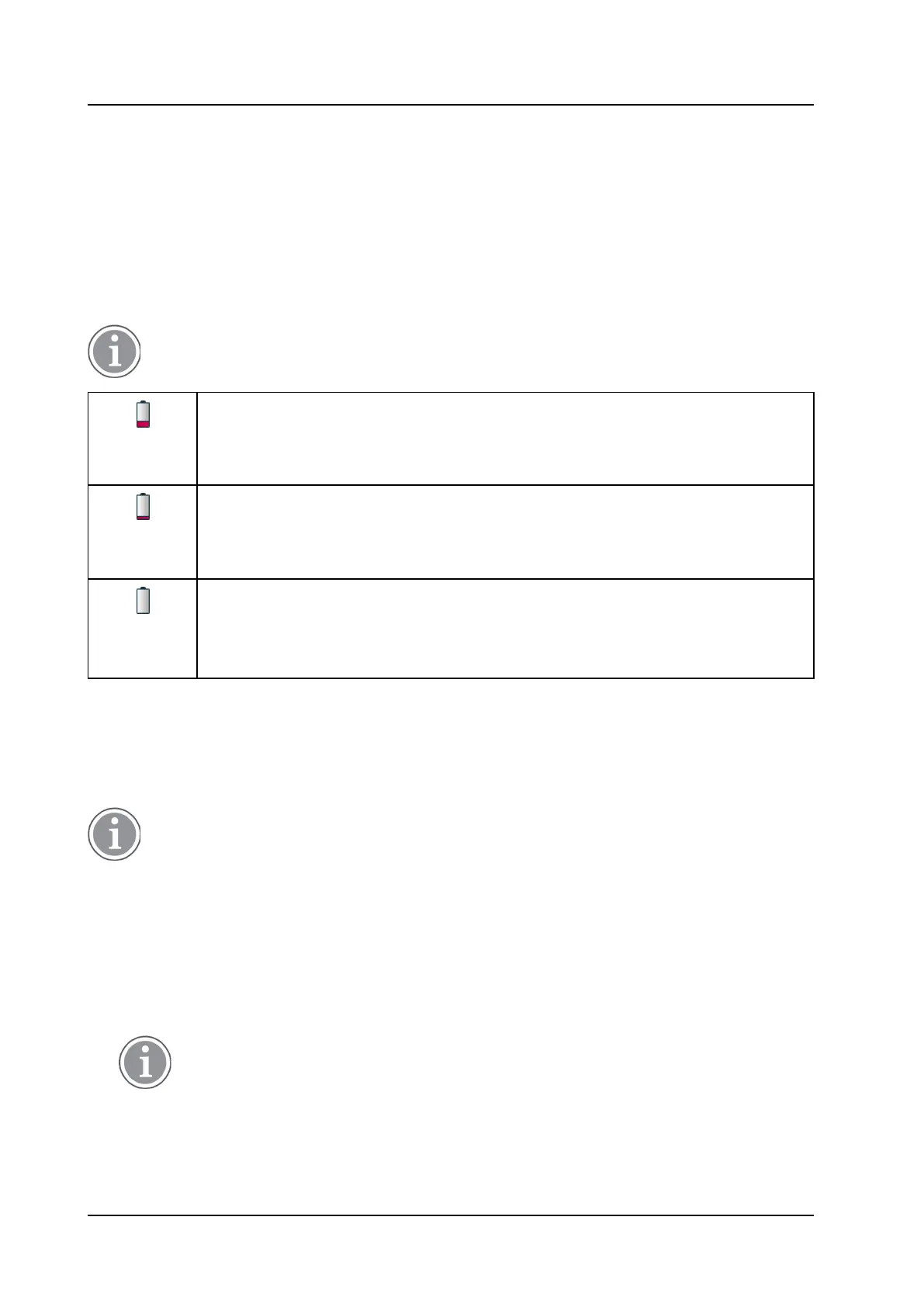 capacity. An empty battery also indicated by a warning signal that sounds every