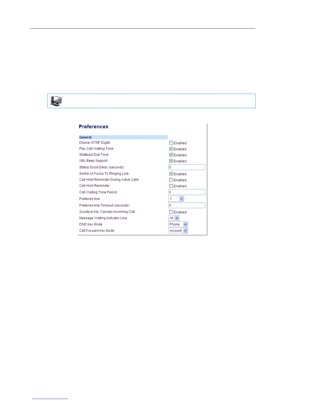 2. A call waiting tone is enabled by default. If required, disable the Play Call Waiting Tone