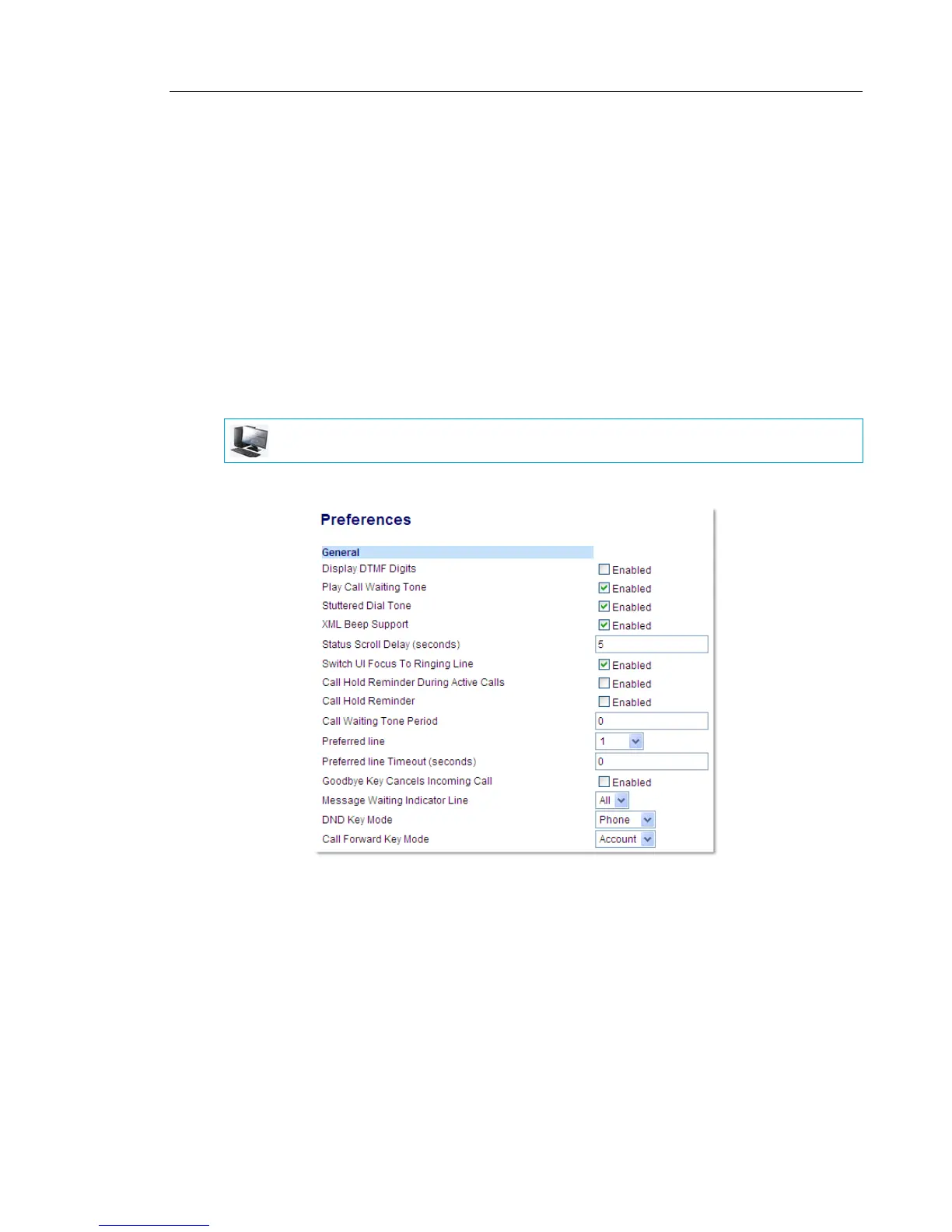 2. The Call Hold Reminder During Active Calls field is disabled by default. To enabled this