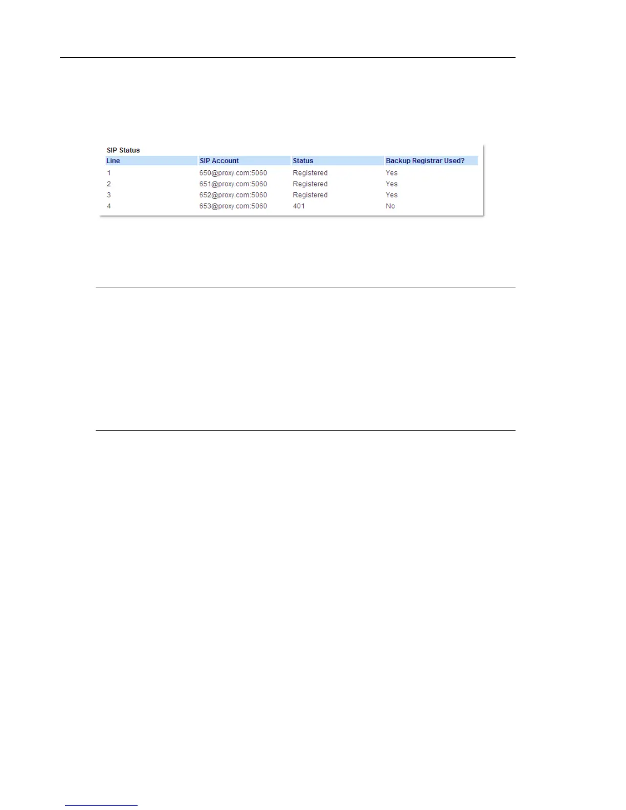 Line SIP Account Status Backup Registrar Used?