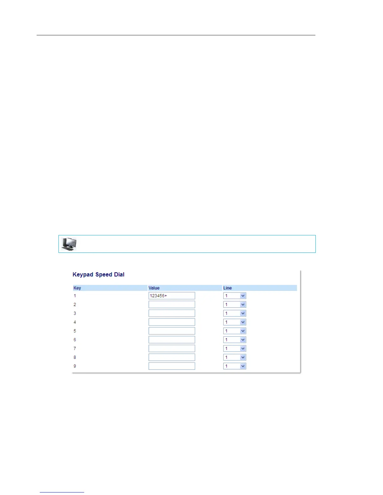 5. In the Line field, select a line for which to apply the speed dial to. Valid values are 1 through