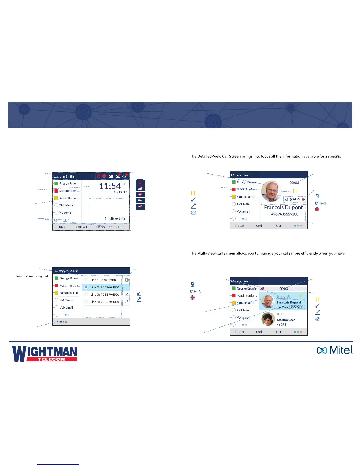 All pertinent information from the Detailed-View Call Screen is also available on the Multi-