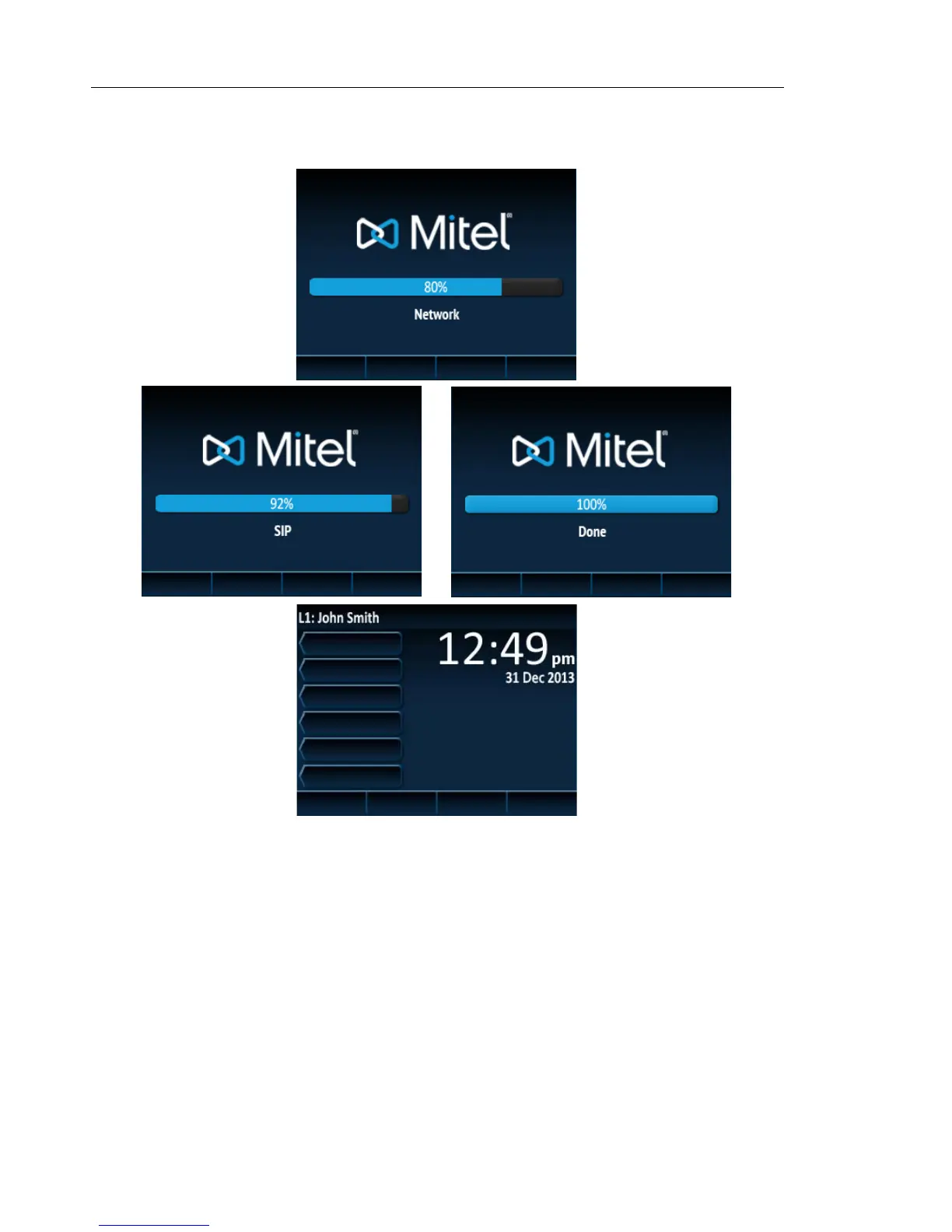 When the configuration update is complete, the phone displays the following screens and then