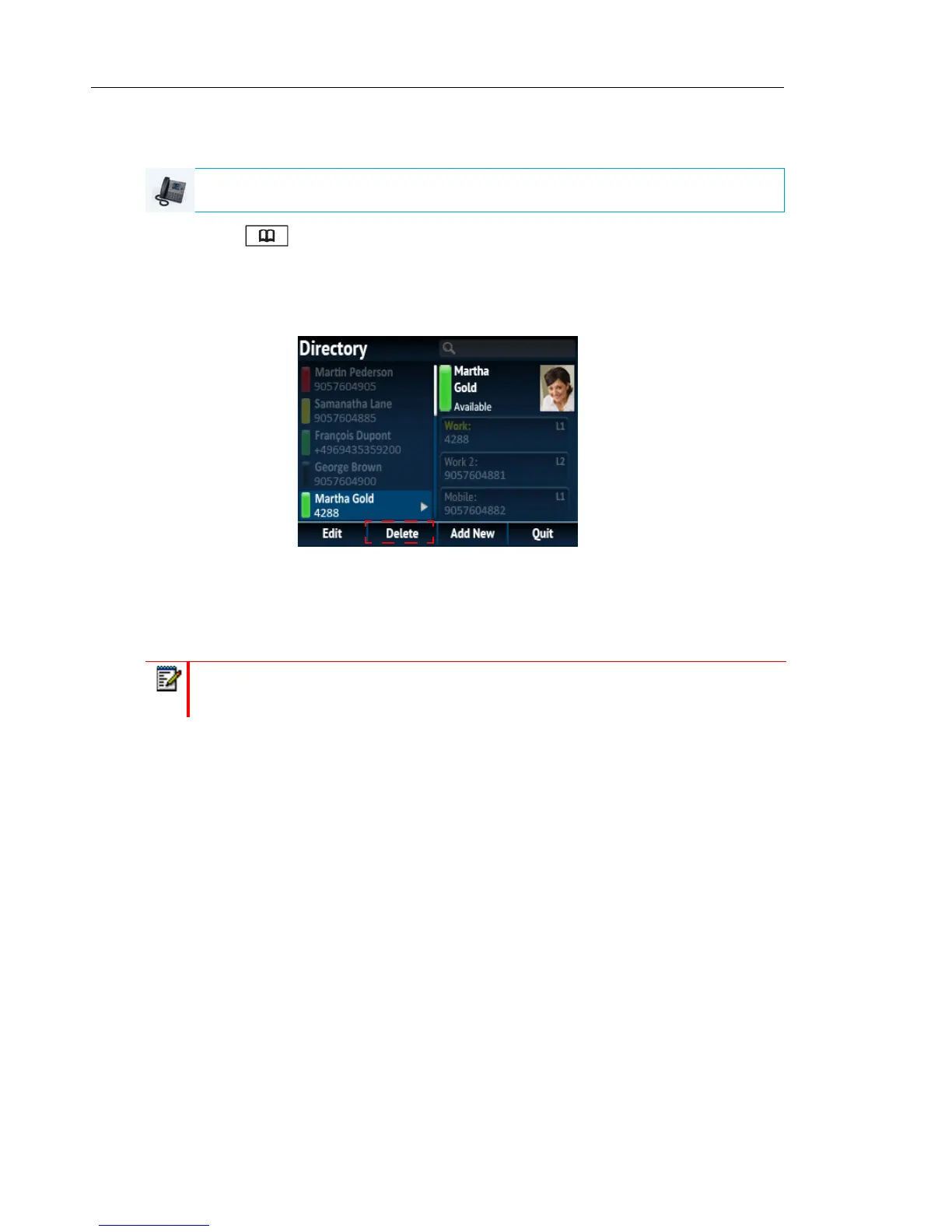 Press the Delete Item softkey to delete the individual entry from your Local Directory.