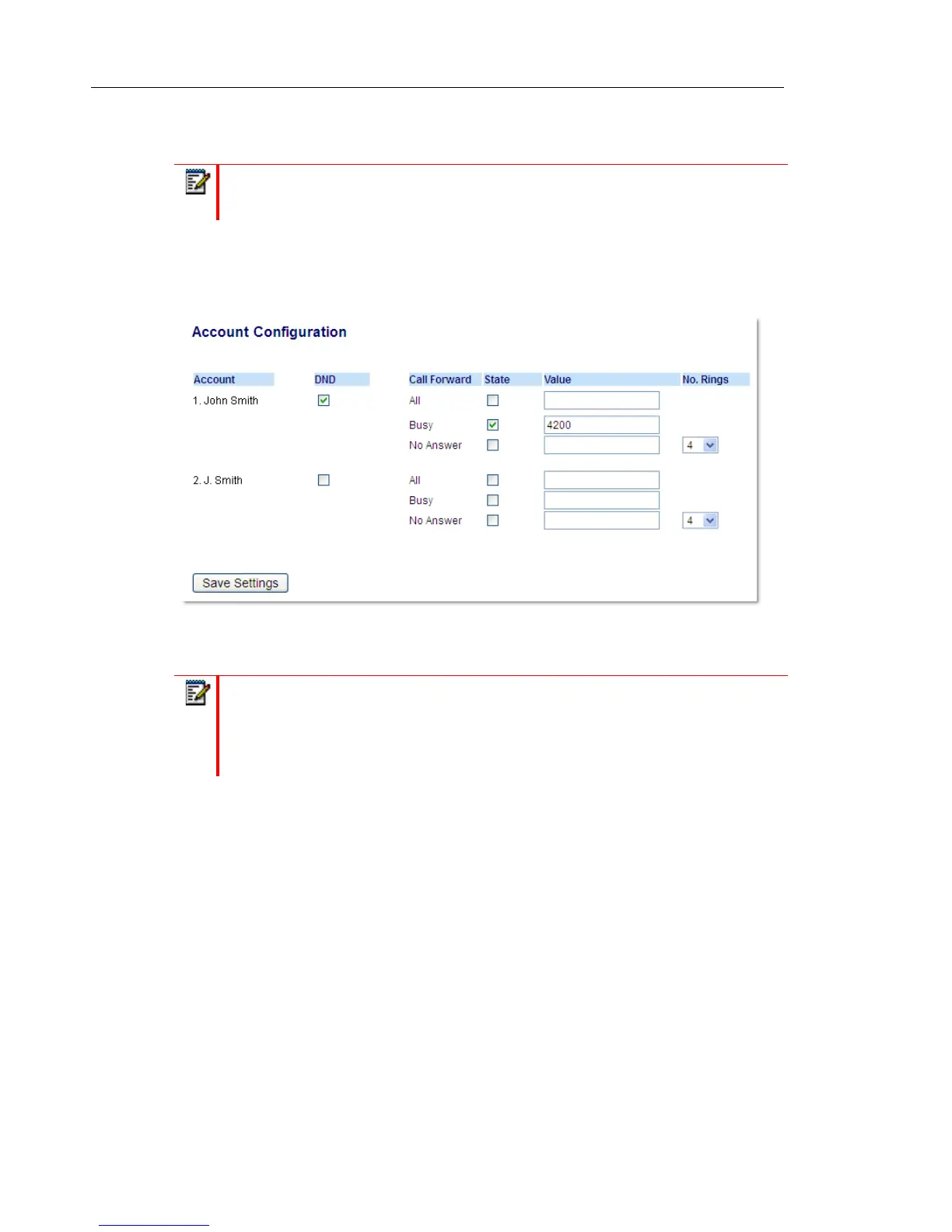 5. For each account, enable the Call Forward state by placing a check mark in one or more