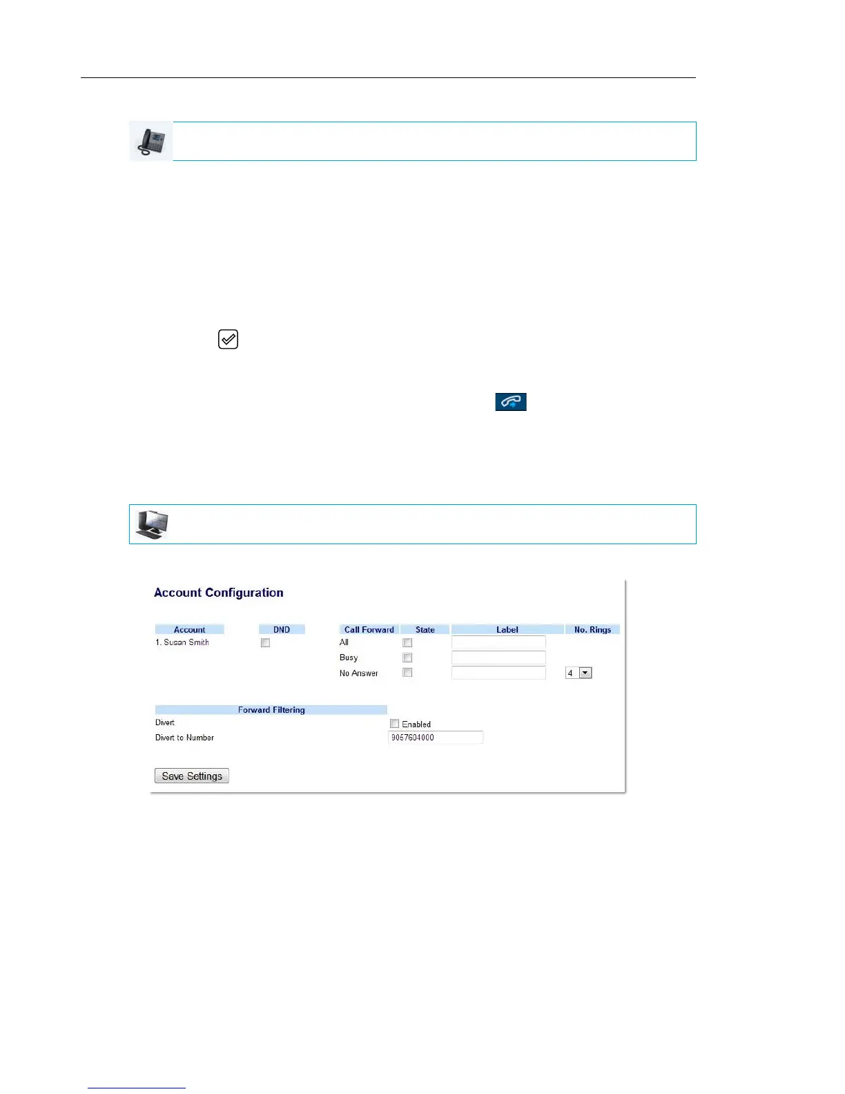 configured) Call Forward softkey LEDs will be lit indicating Forward Filtering is activated.