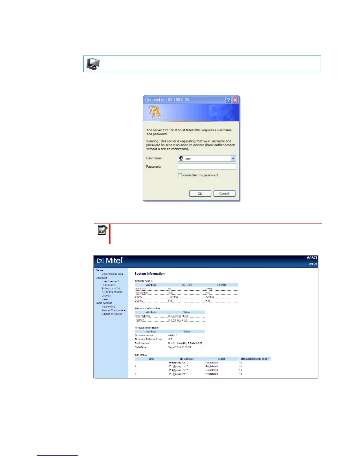 1. Open your web browser, enter the phone’s IP address or host name into the address field