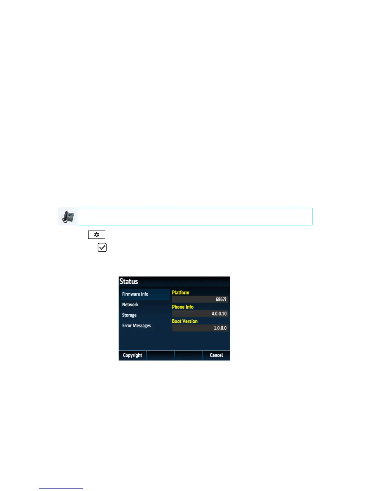 The Status option on the IP phone displays the status of your phone to the LCD display.