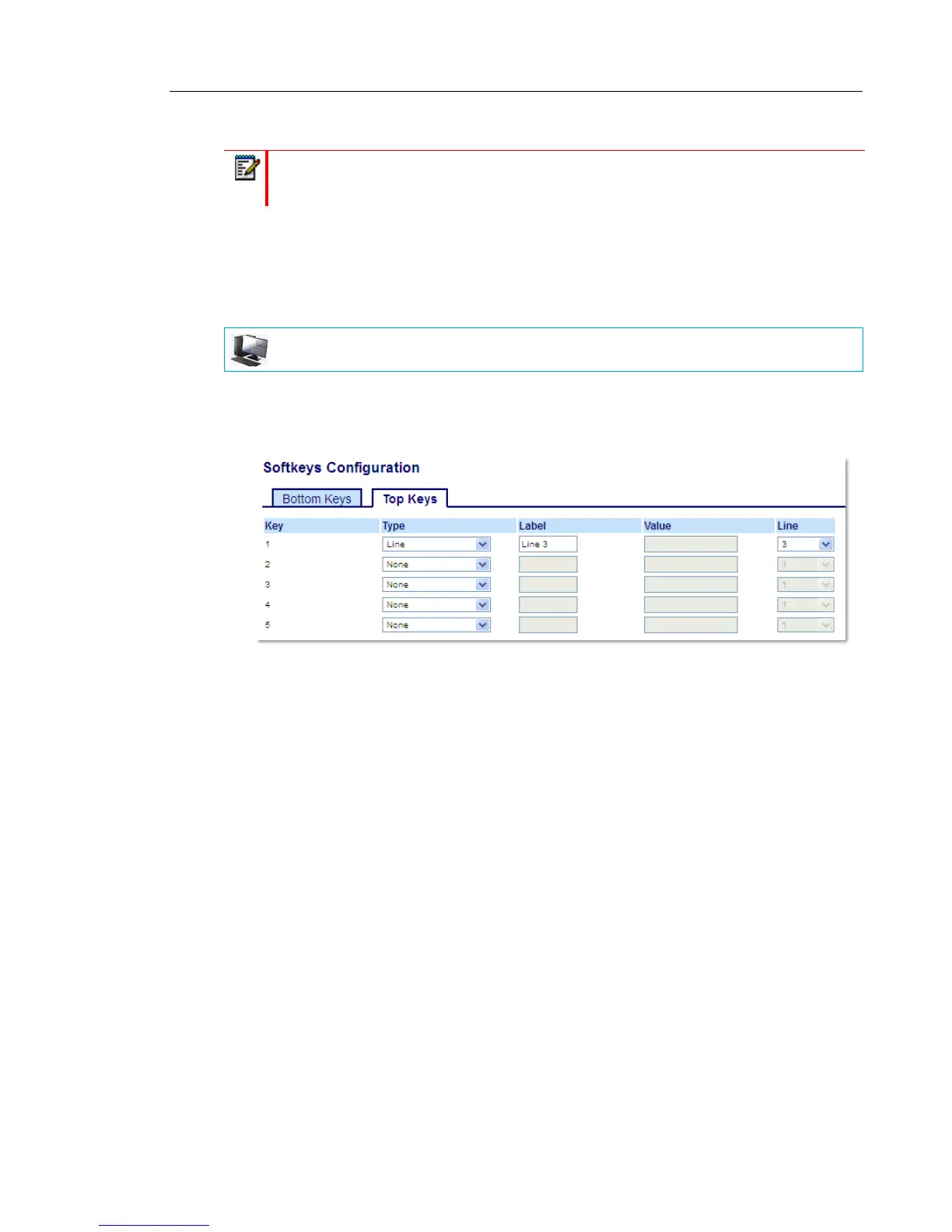 Note: Line functionality can only be programmed on the left softkeys.