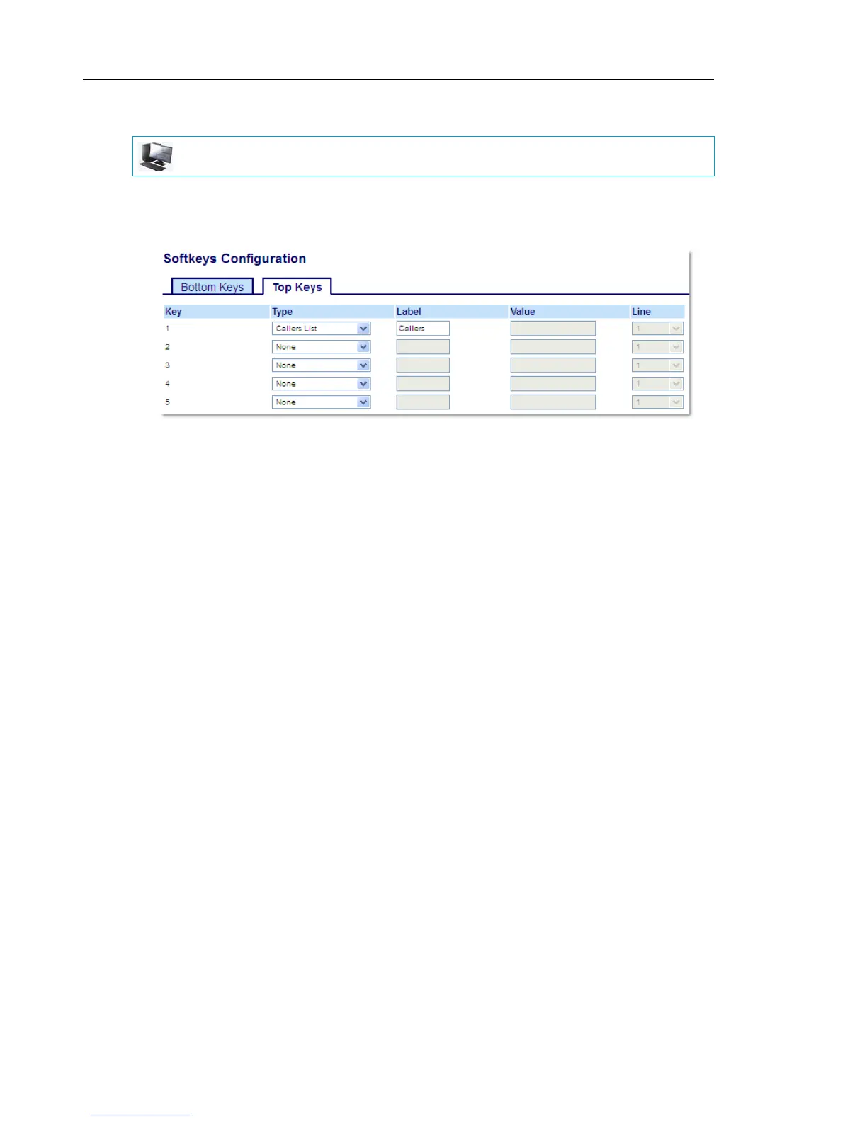 CONFIGURING A CALLERS LIST KEY USING THE MITEL WEB UI