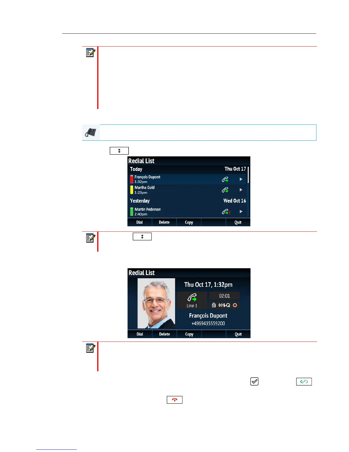 1. When the Redial List is full, the oldest call records are deleted to accommodate the