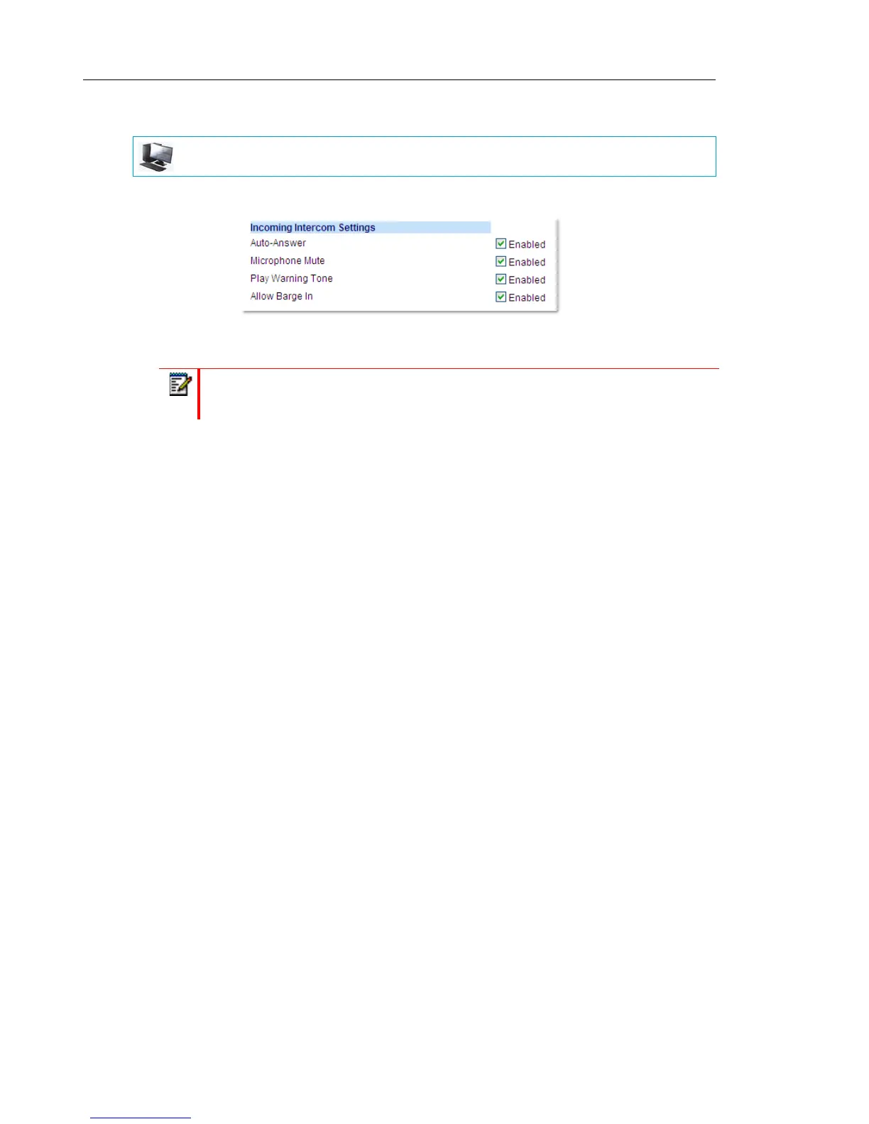 plays a warning tone when it receives in incoming intercom call. To disable this field,
