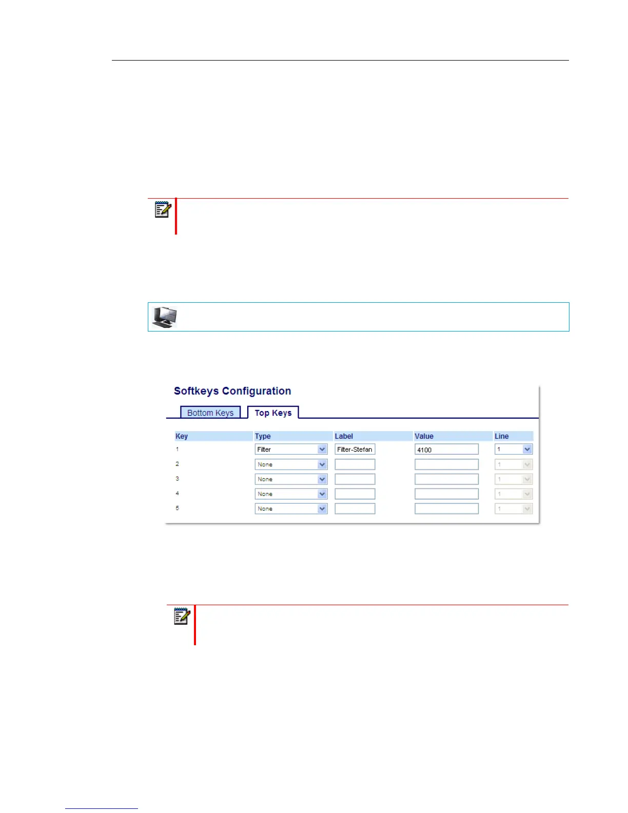 Alternatively, a single Filter softkey can be configured without a defined key value. If this is the