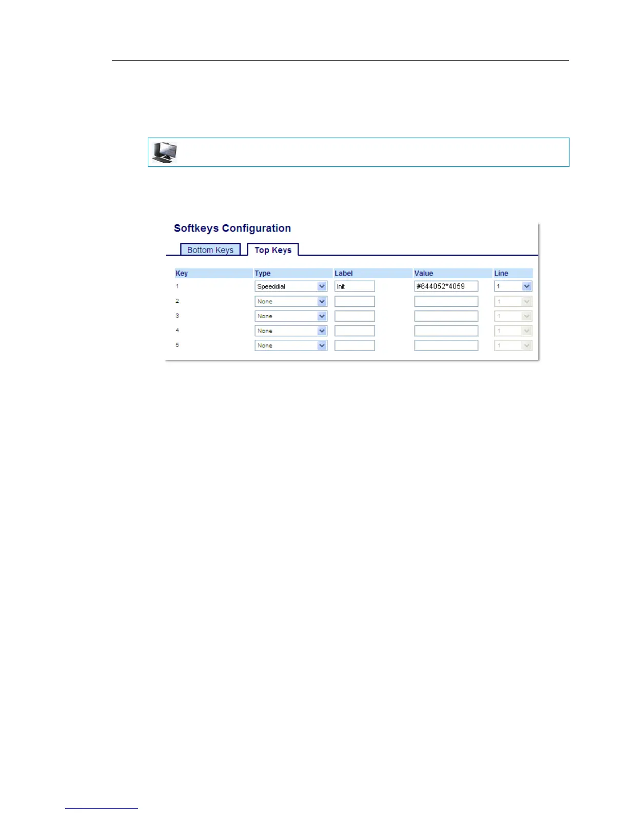 6. In the “Line” field, select the line for which you want to use the key functionality.