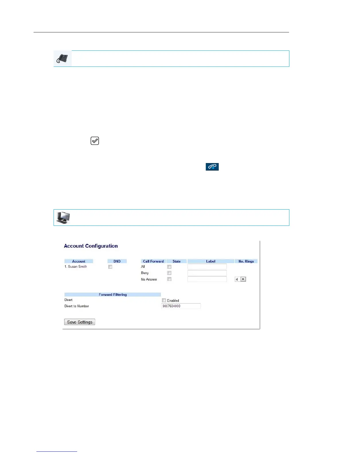 configured) Call Forward softkey LEDs will be lit indicating Forward Filtering is activated.