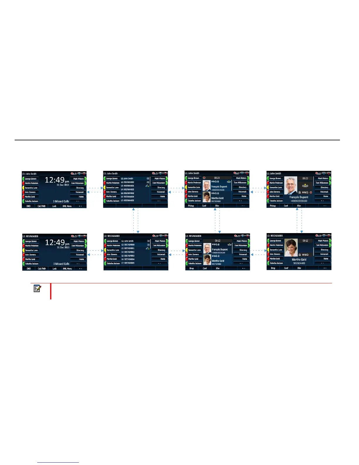 The figure below provides a visual representation of the different screens and the UI behavior when a navigation key is pressed.