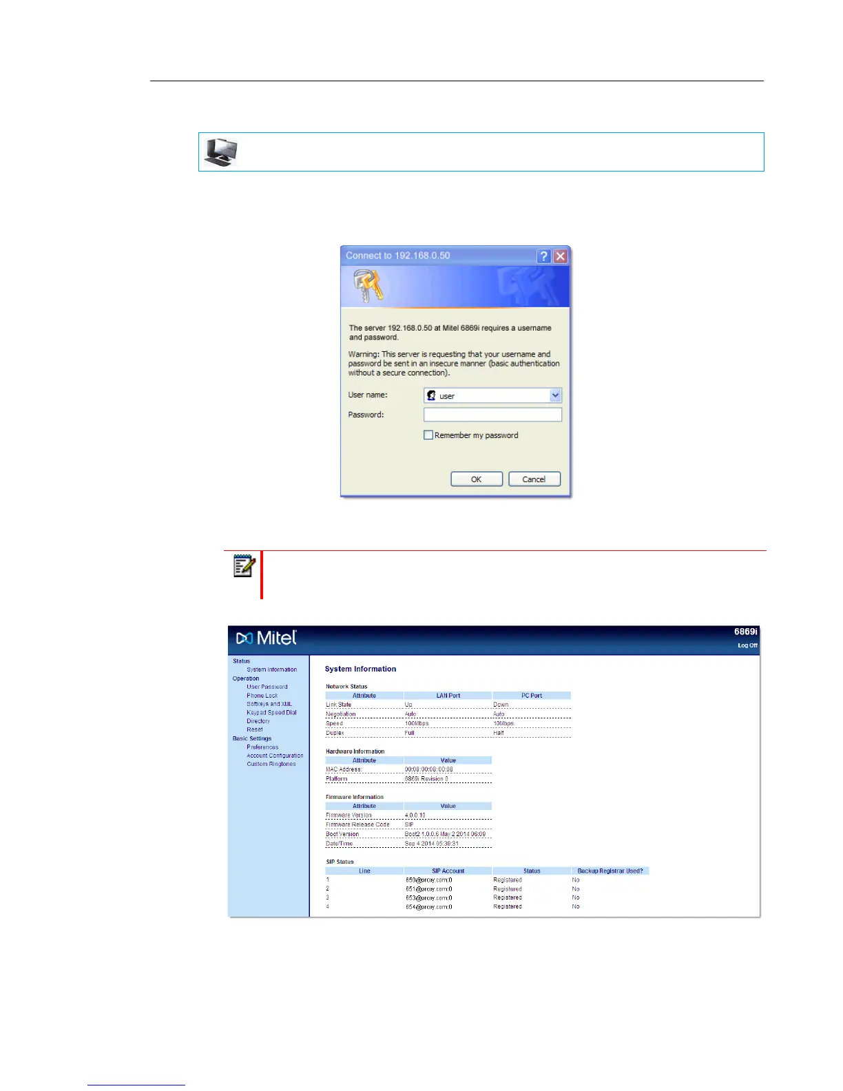 1. Open your web browser, enter the phone’s IP address or host name into the address field
