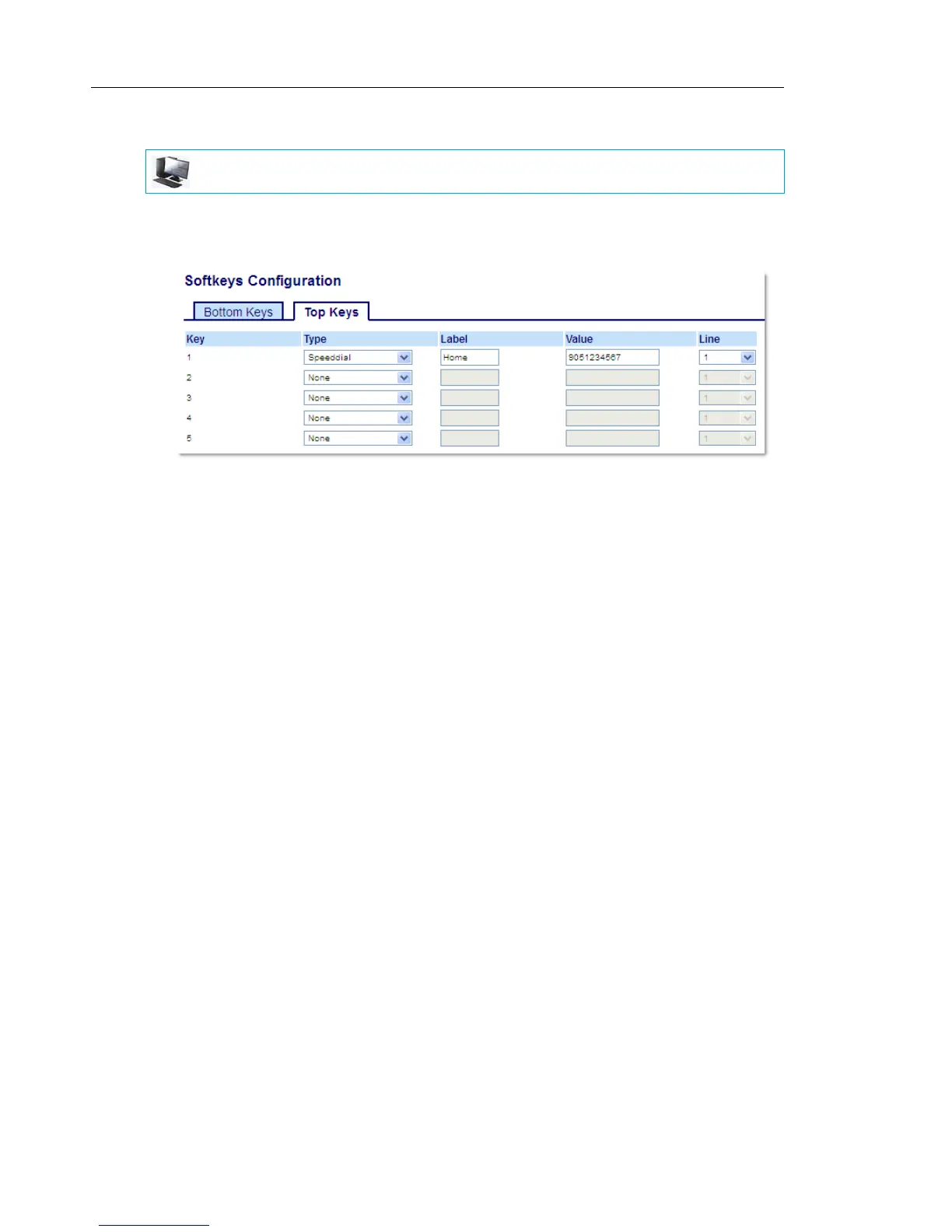6. In the Line field, select a line to apply to this key. Valid values are 1 through 24.