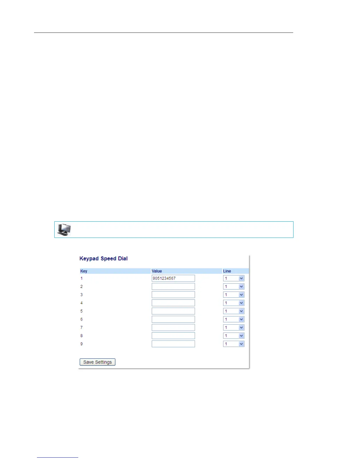 6. In the Line field, select a line to apply to this key. Valid values are 1 through 24.