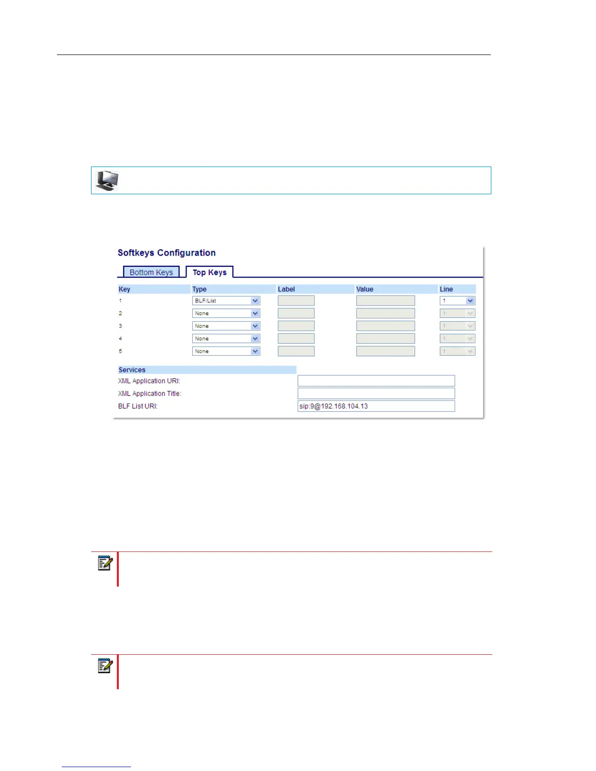If you set a key to use BLF/List, you must also enter a BLF List URI at Operation > Softkeys