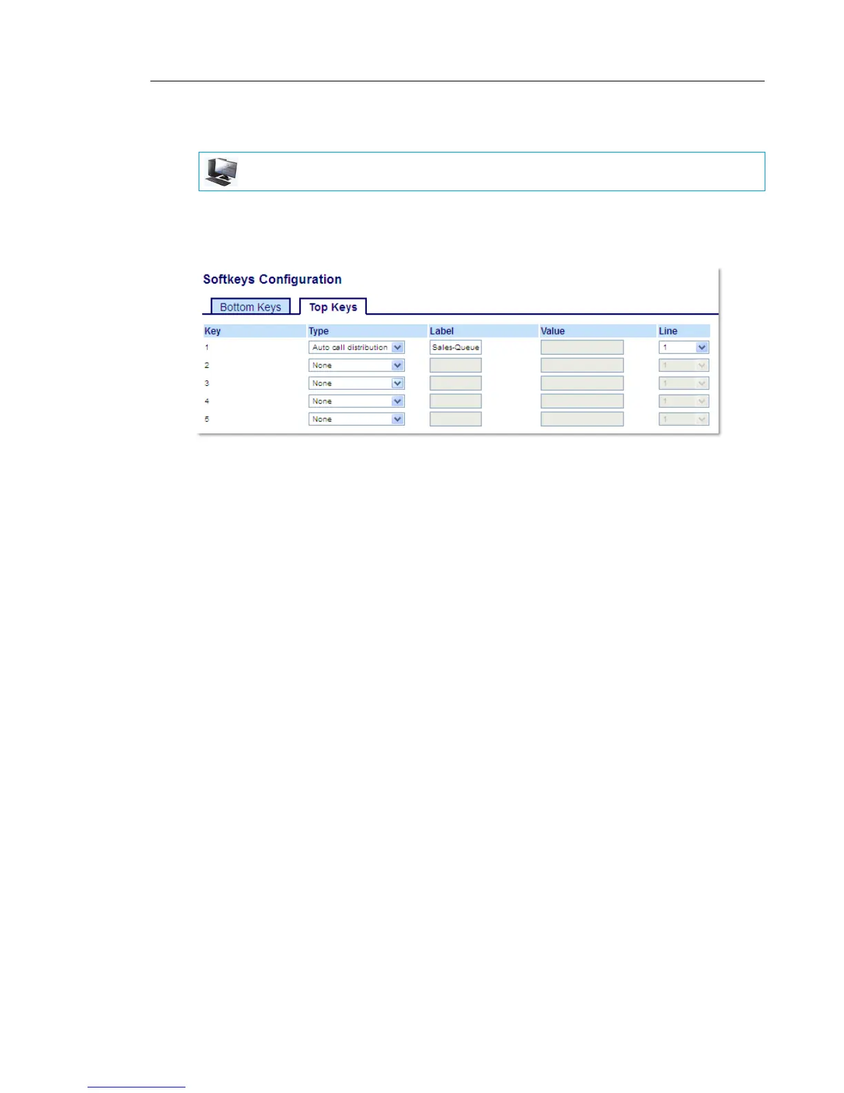 7. In the Line field, select a line to apply Automatic call distribution. Valid values are 1 through